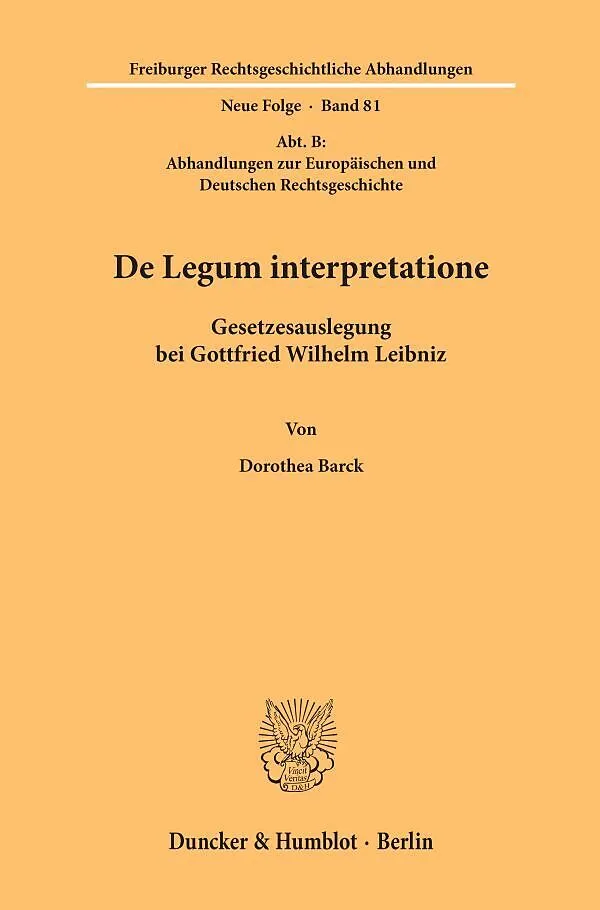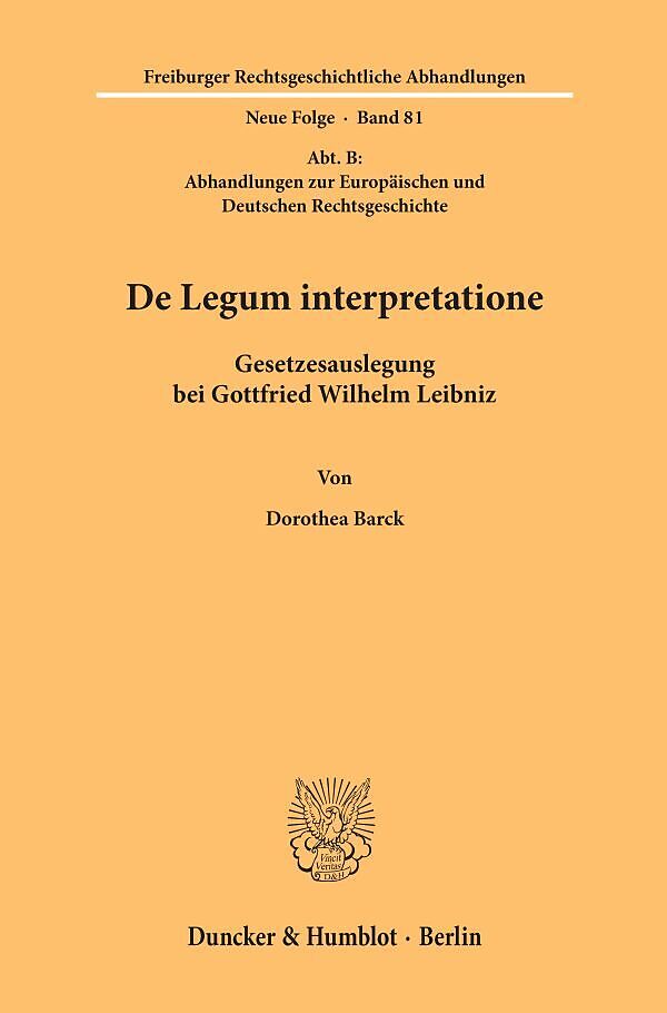 Die Untersuchung umfasst die deutsche Übersetzung und die Auswertung des von Leibniz wohl im Jahre 1678/1679 verfassten lateinischen Textes »De Legum interpretatione, rationibus, applicatione, systemate« sowie die Übersetzung der Parallelschrift »De legum rati...
