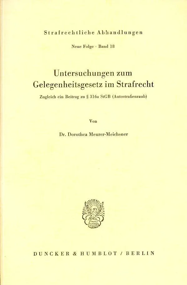 Untersuchungen zum Gelegenheitsgesetz im Strafrecht.