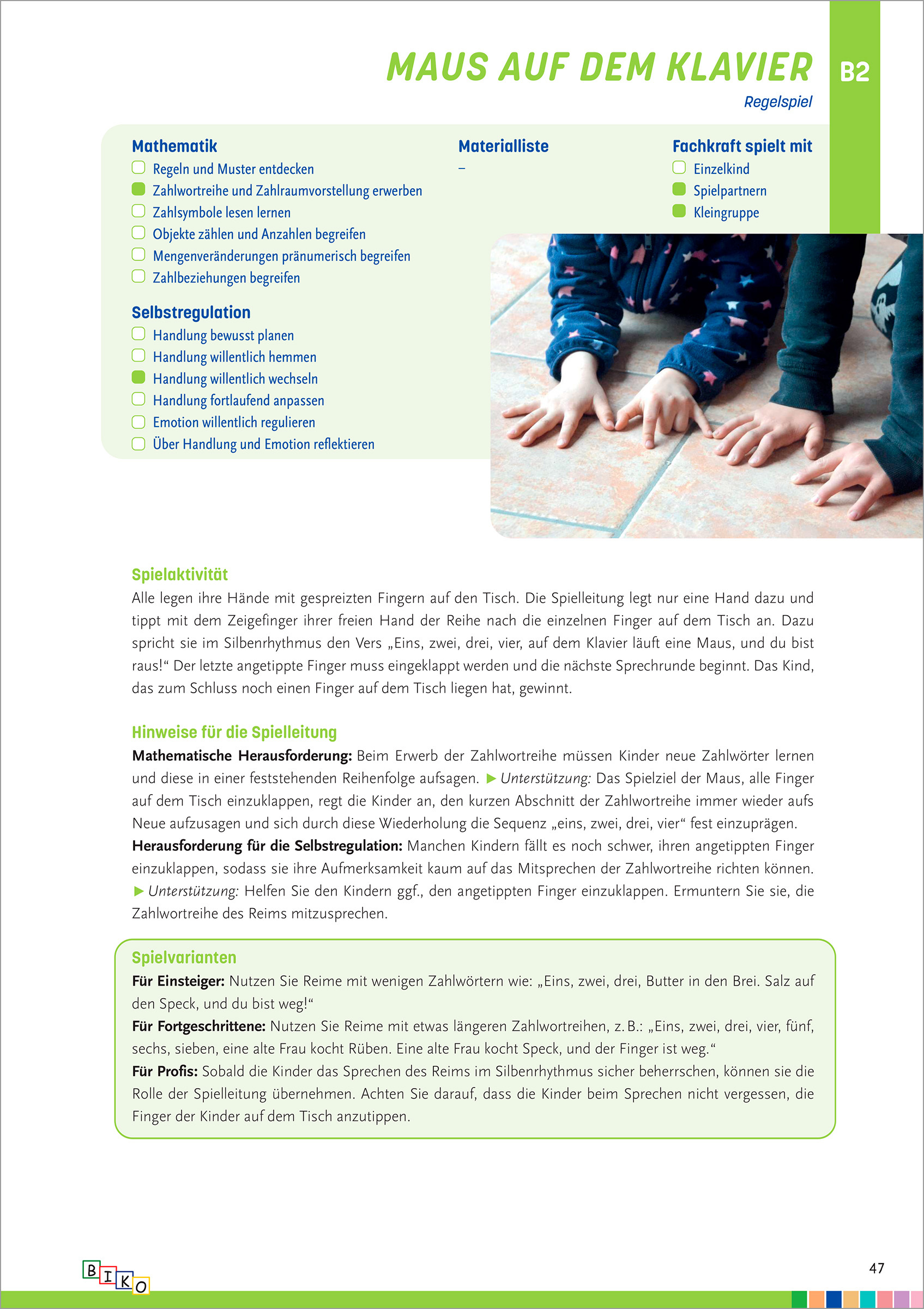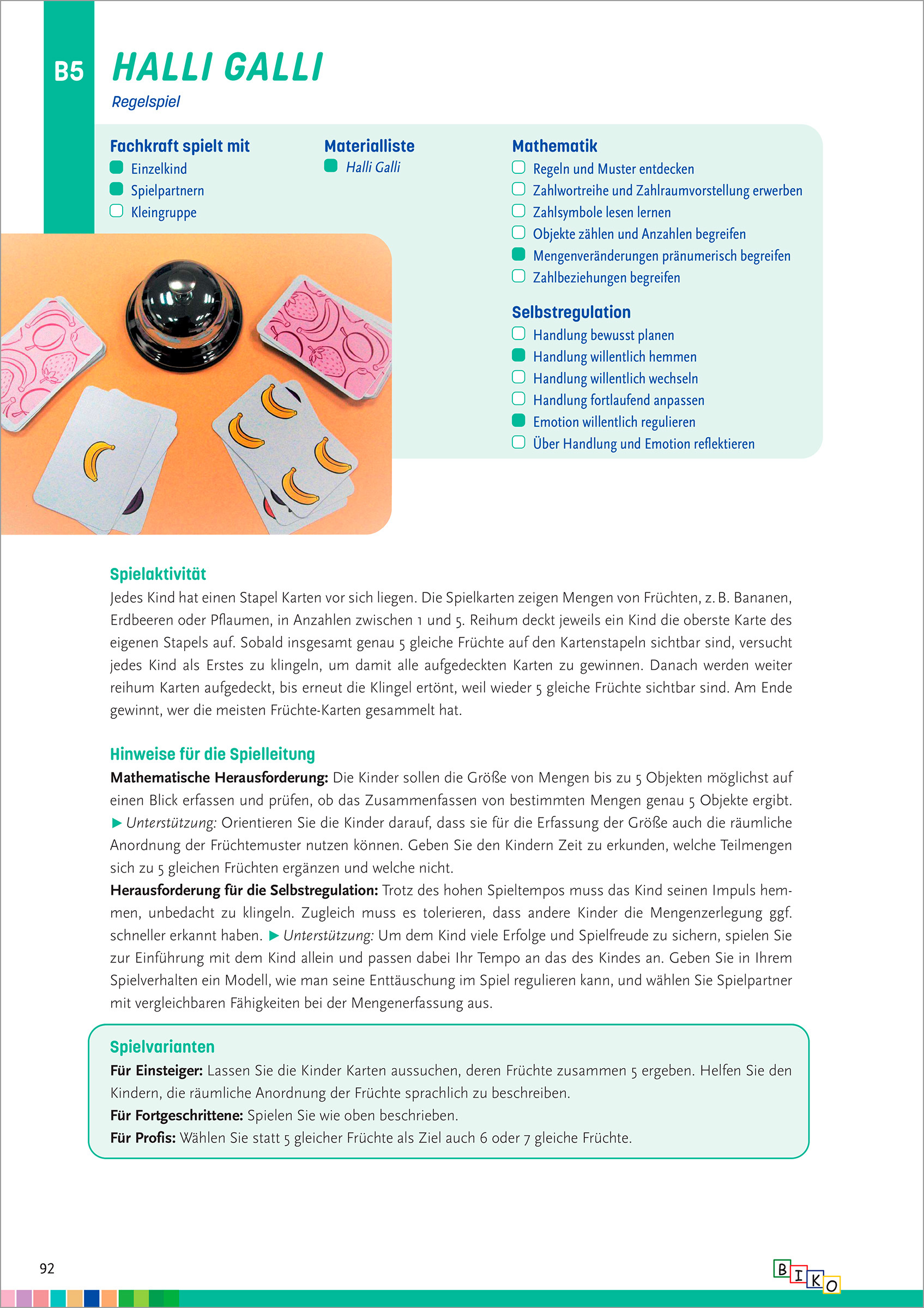 Die 70 Spielvorschläge der Biko-Mathekiste sind auf Förderfacetten der Mathematik und der Selbstregulation ausgerichtet. Sie bieten Kindern in den sinnerfüllten Spielen vielfältige Erfahrungsmöglichkeiten, die sie mit Freude immer wieder selbst aktiv werden l...