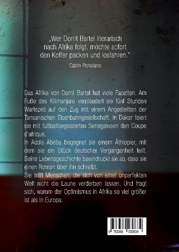 Wer Dorrit Bartel literarisch nach Afrika folgt, möchte sofort den Koffer packen und losfahren. Catrin Ponciano Das Afrika von Dorrit Bartel hat viele Facetten. Am Fuße des Kilimanjaro verplaudert sie fünf Stunden Wartezeit auf den Zug mit einem Angestellten d...