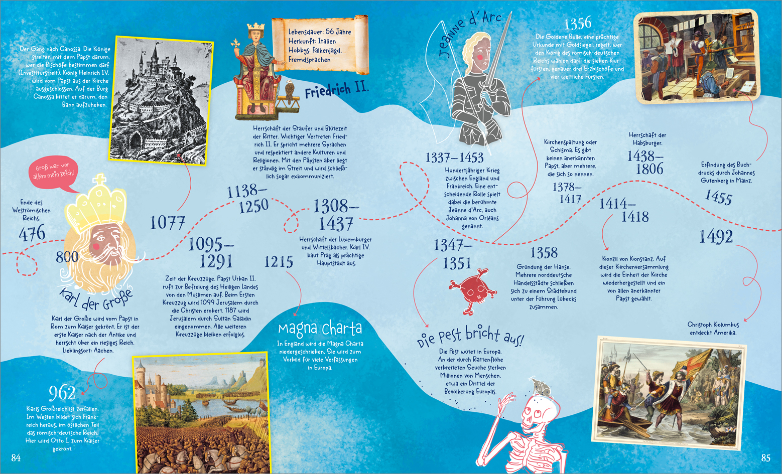 Wer war Kleopatra? Knabberten Steinzeitmenschen wirklich Popcorn? Und hatte jede mittelalterliche Burg ein Verlies? Mit diesem Buch können sich neugierige Leserinnen und Leser auf eine genauso spannende wie vergnügliche Reise durch die Zeit begeben. Bronzezeit...