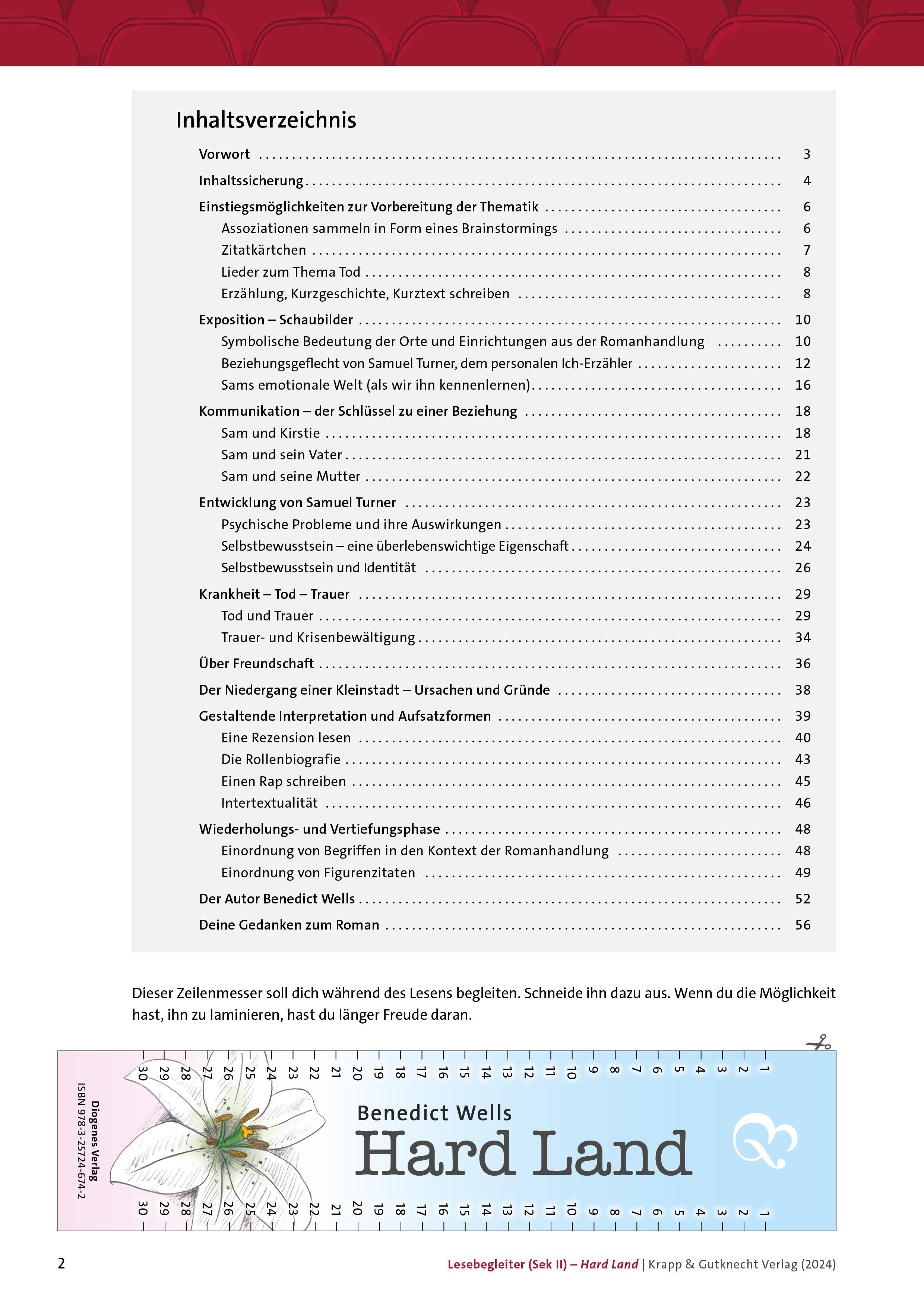 Bitte beachten: Für die Abschlussprüfung zum Mittleren Bildungsabschluss im Saarland gibt es ein separates Schülerarbeitsheft zu Hard Land , ISBN 978-3-96323-091-2. Unser Lesebegleiter begleitet bei der Erschließung der Ganzschrift Hard Land von Benedict Well...
