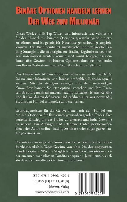 Dieses Werk enthält Top-Wissen und Informationen, welches Sie für den Handel mit Binären Optionen gewinnbringend einsetzen können und ist gerade für Neueinsteiger unbedingt empfehlenswert. Das Buch beinhaltet ausführliche und erfolgreiche Trading-Strategien di...