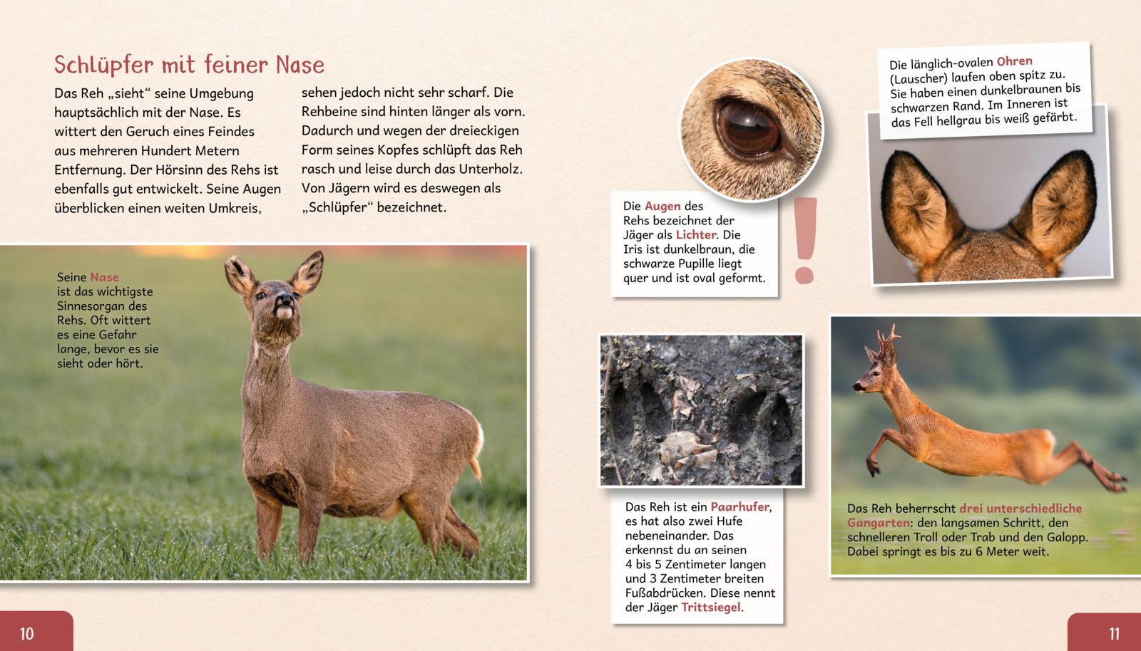 Kompaktes erstes Wissen über das Reh mit vielen Infos und Fotos zum Staunen Fast unbemerkt wartet das Kitz in der gut geschützten Wiese. Sobald es dämmert, wagt sich seine Mutter in den Wald, um zu äsen. Dabei verlässt sie sich ganz auf ihre feine Nase witter...