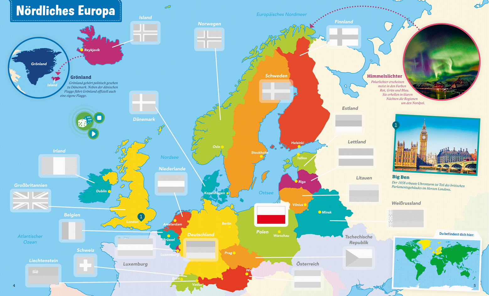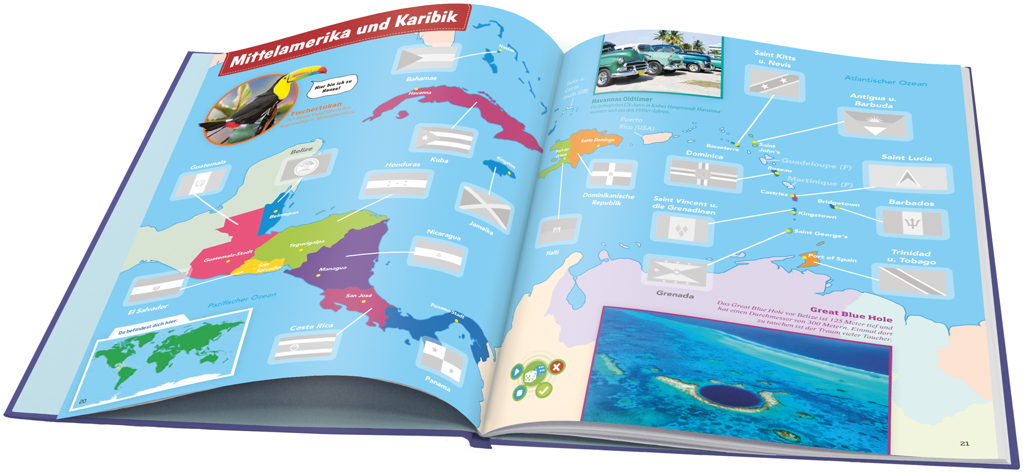 Die Bedeutung der Länderflaggen und die jeweiligen Besonderheiten des Landes stehen im Mittelpunkt dieses bunten Stickeratlas. Mit dem BOOKii Hörstift erfahren die Kinder Hintergründe und Zusammenhänge. 250 tolle Sticker zum Einkleben in den Atlas vertreiben j...