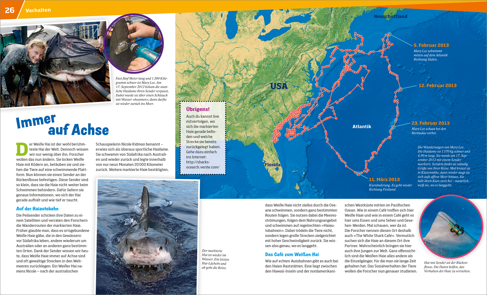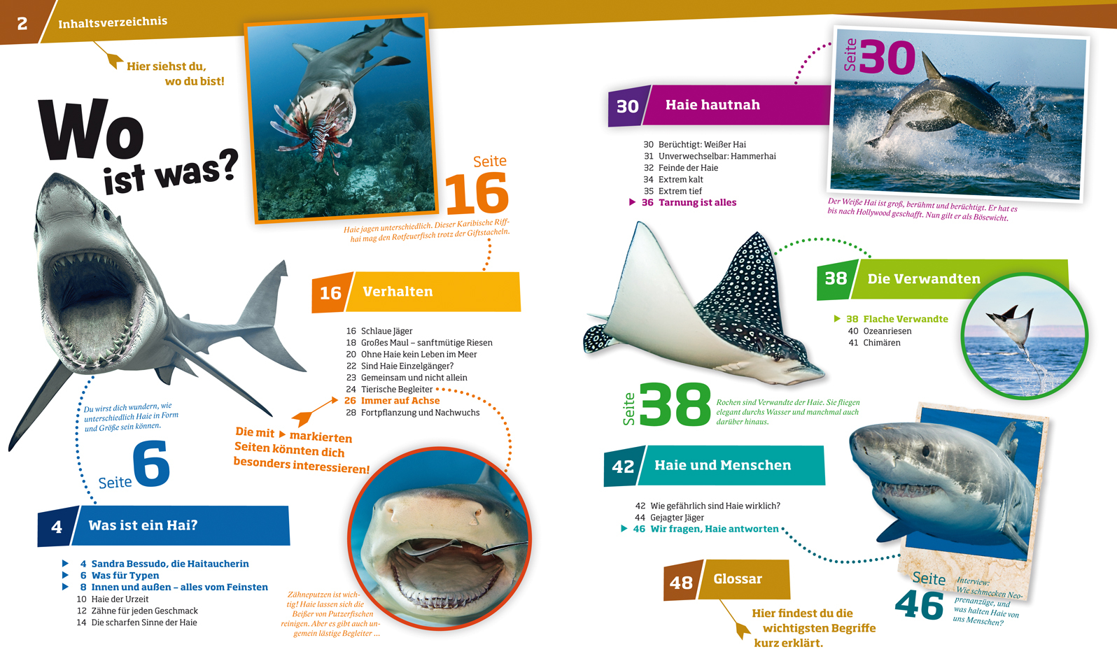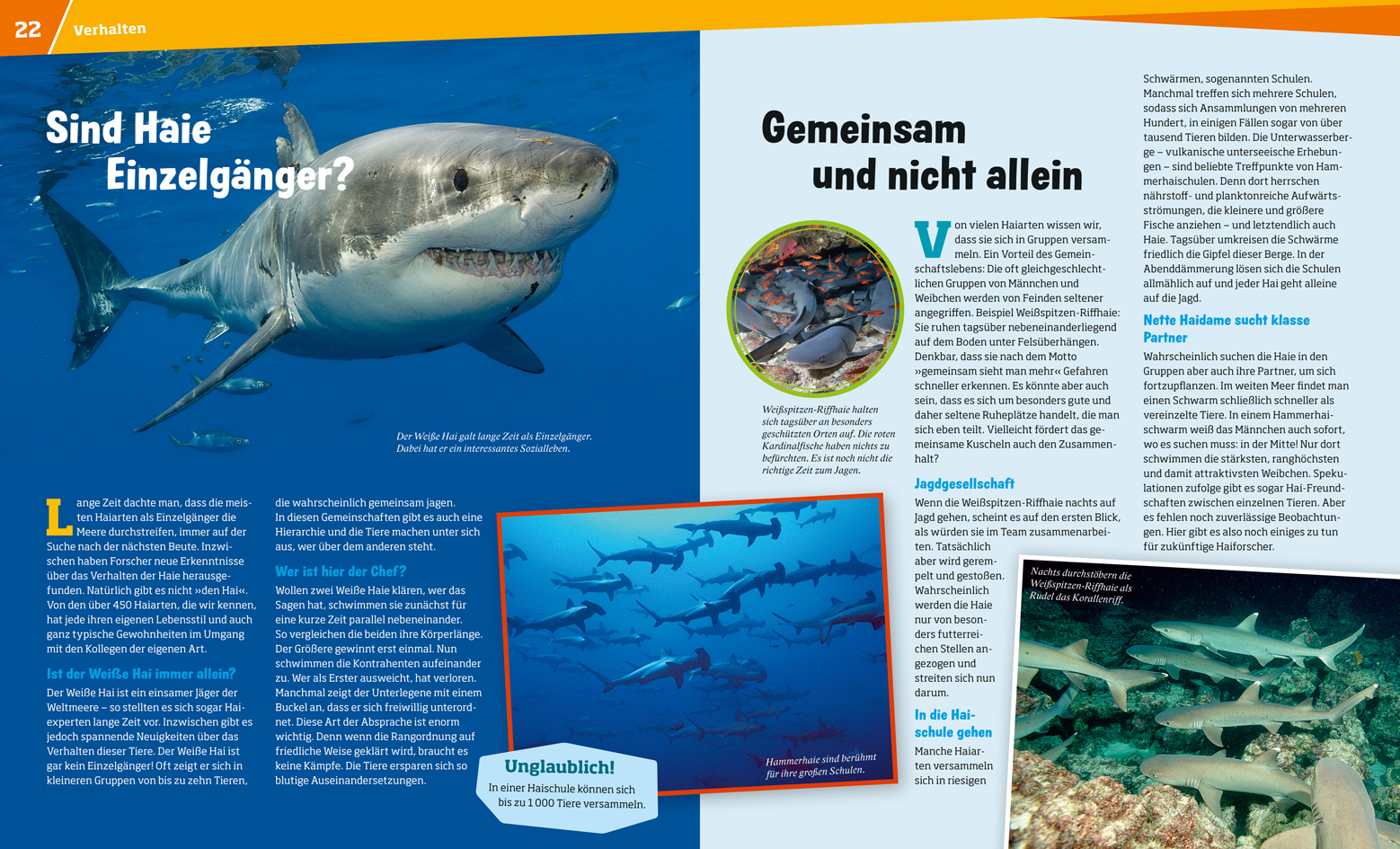 Haie gibt es in Klein und in Riesengroß. Einige sind flach, andere mächtig dick. Manche sind silbergrau, andere blau oder braun, gestreift oder getüpfelt. Haie haben schon vor den Dinosauriern gelebt und sich im Laufe von Jahrmillionen an unterschiedlichste Le...