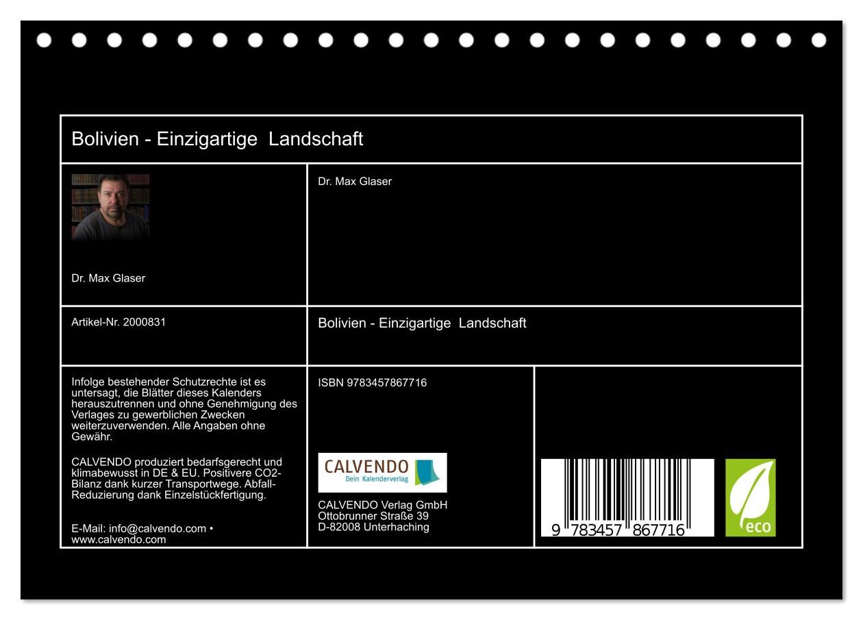 Bolivien - Einzigartige Landschaft (Tischkalender 2026 DIN A5 quer), CALVENDO Monatskalender