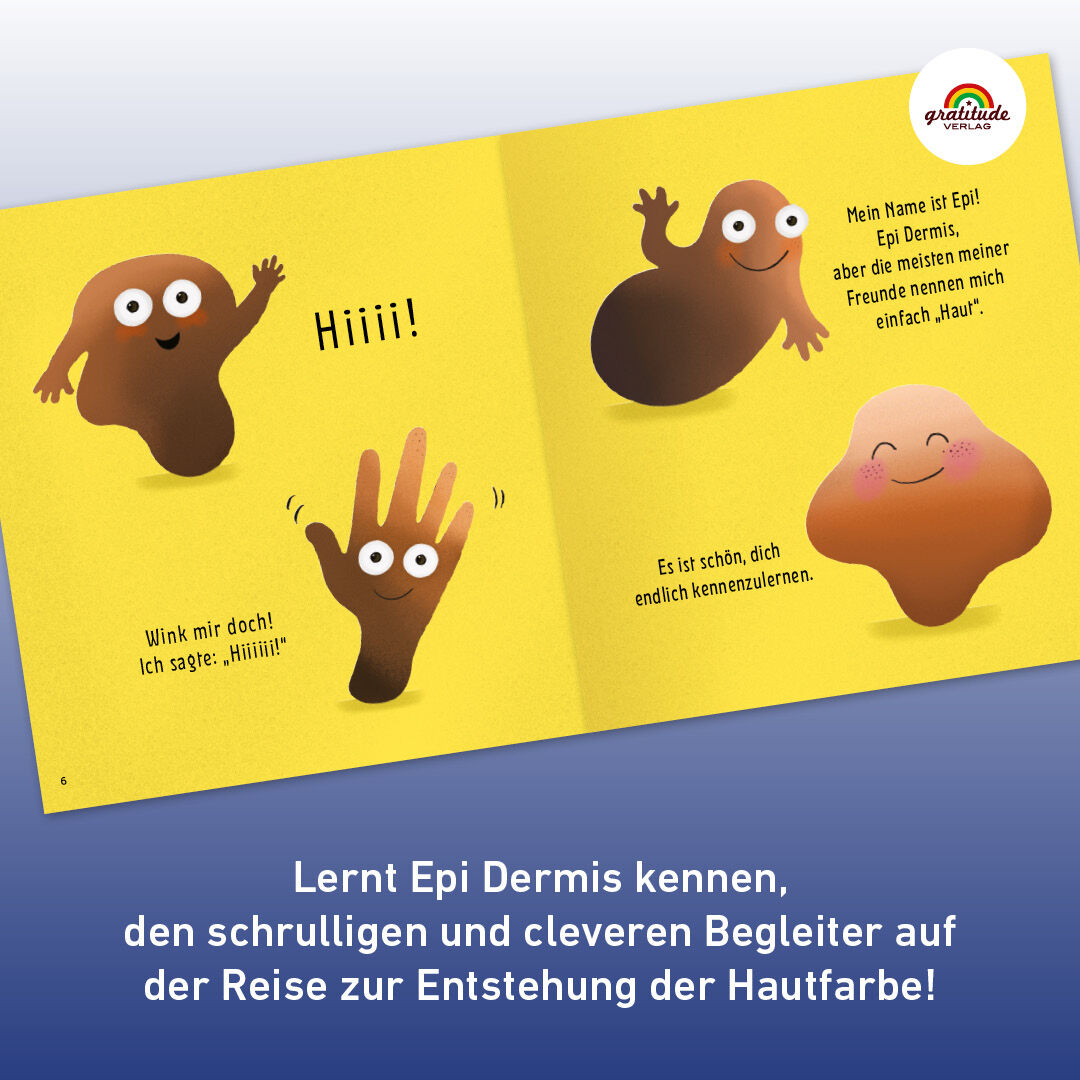 Die Welt ist bunt! Und wir sind es auch! Es ist doch nur Haut Entdecke die Wahrheit über Hautfarbe und Vielfalt Lernt Epi Dermis kennen, den schrulligen und cleveren Begleiter, der euch auf eine aufregenden Entdeckungsreise durch die faszinierende Welt der Ha...