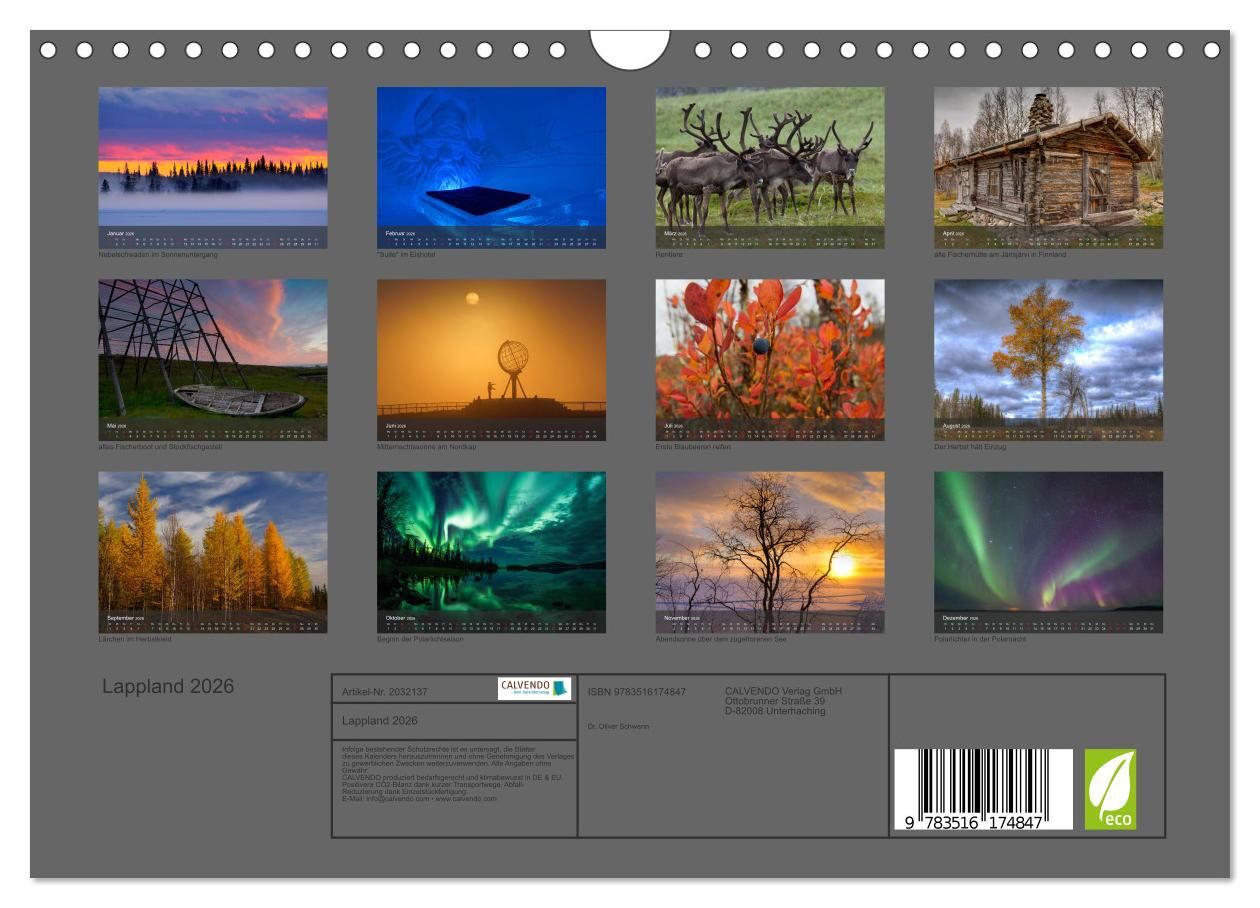 Lappland 2026 (Wandkalender 2026 DIN A4 quer), CALVENDO Monatskalender