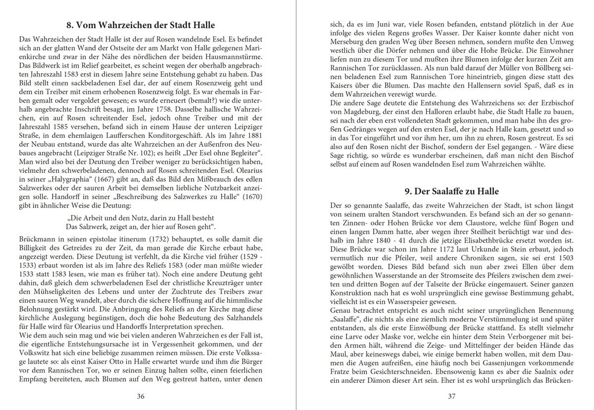 Autor: Dr. Siegmar Baron von Schultze-Gallera, Reprint. Iim Jahr 2022 neu gesetzte Auflage, Taschenbuch, 284 Seiten. Mit 108 Sagen aus Halle sowie 263 Sagen aus dem Saalkreis. INHALT: Vorwort das Autors (Nietleben im Saalkreis, am Tage Bismarcks 1922); Sagen v...
