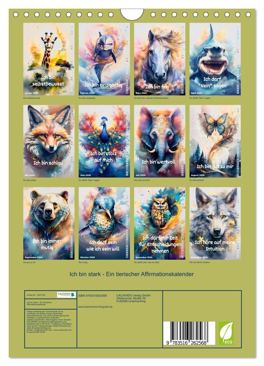 Entdecken Sie die Kraft der Selbstliebe mit dem neuen Affirmationskalender von drachenkind-fotografie. Jeden Monat bestärkt Sie eine inspirierende Botschaft mit einem kunstvollem Tierbild. Diese monatlichen Affirmationen dienen dazu, Ihr Selbstvertrauen zu stä...