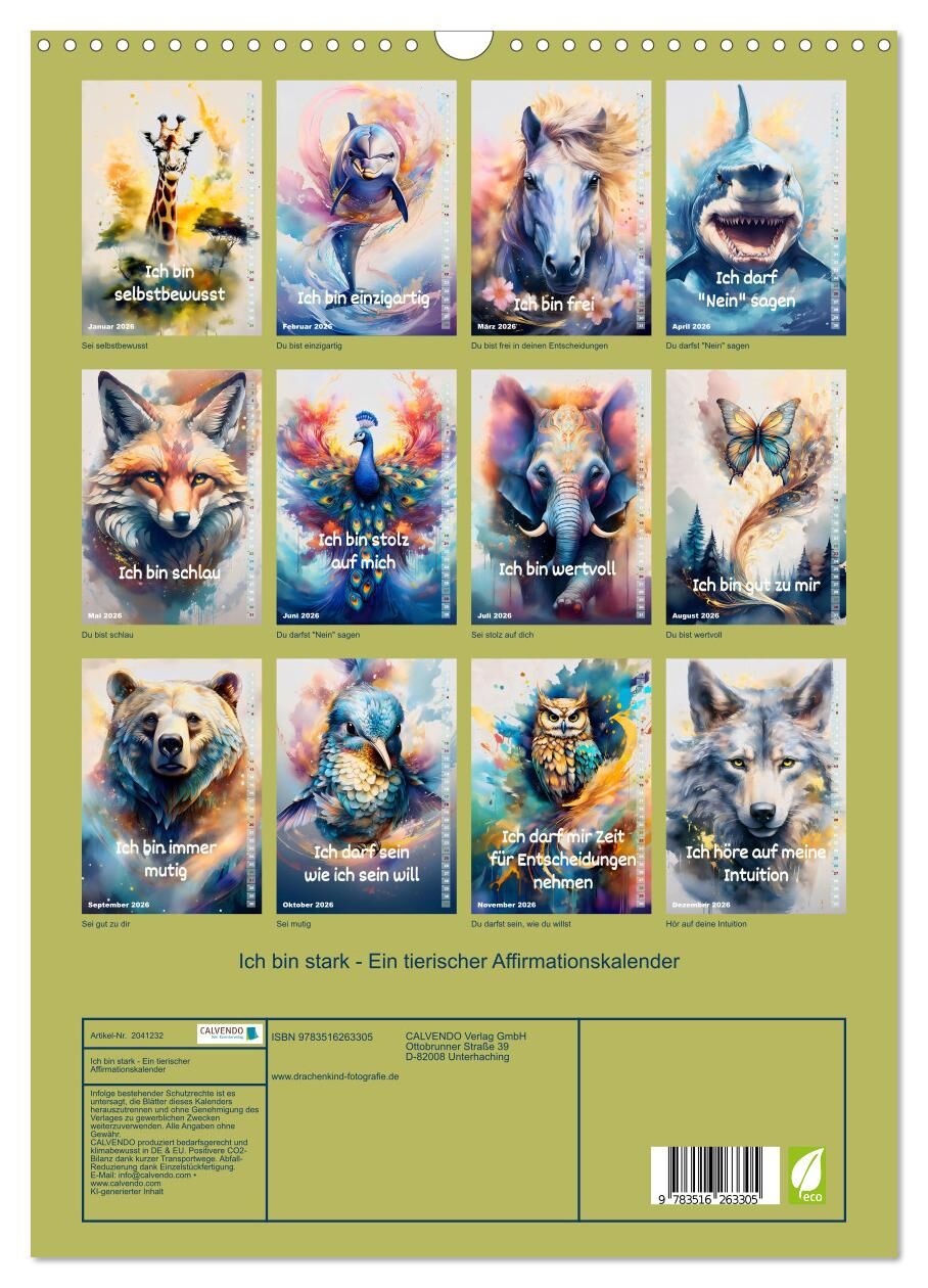 Ich bin stark - Ein tierischer Affirmationskalender (Wandkalender 2026 DIN A3 hoch), CALVENDO Monatskalender