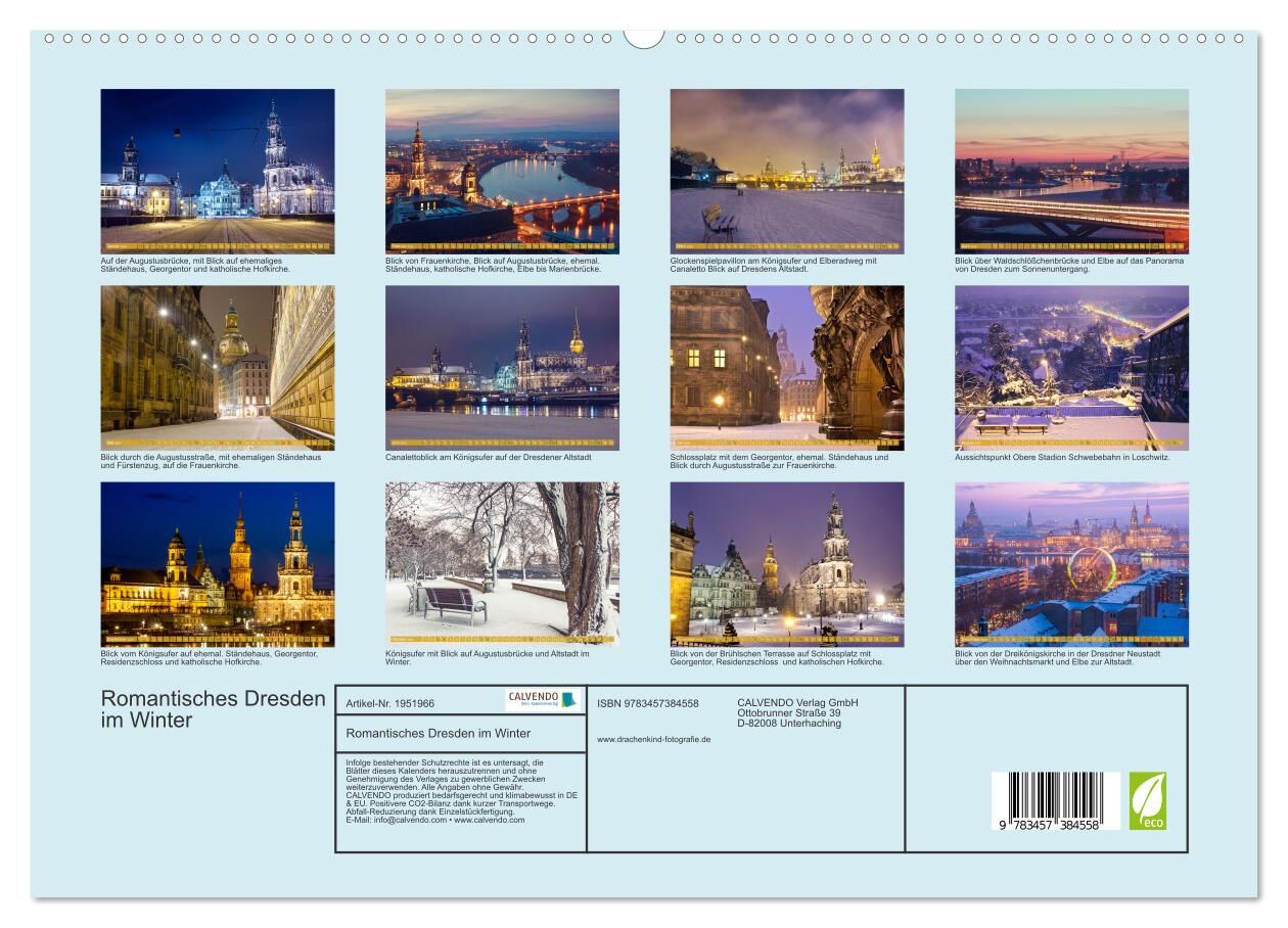 Romantisches Dresden im Winter (hochwertiger Premium Wandkalender 2026 DIN A2 quer), Kunstdruck in Hochglanz