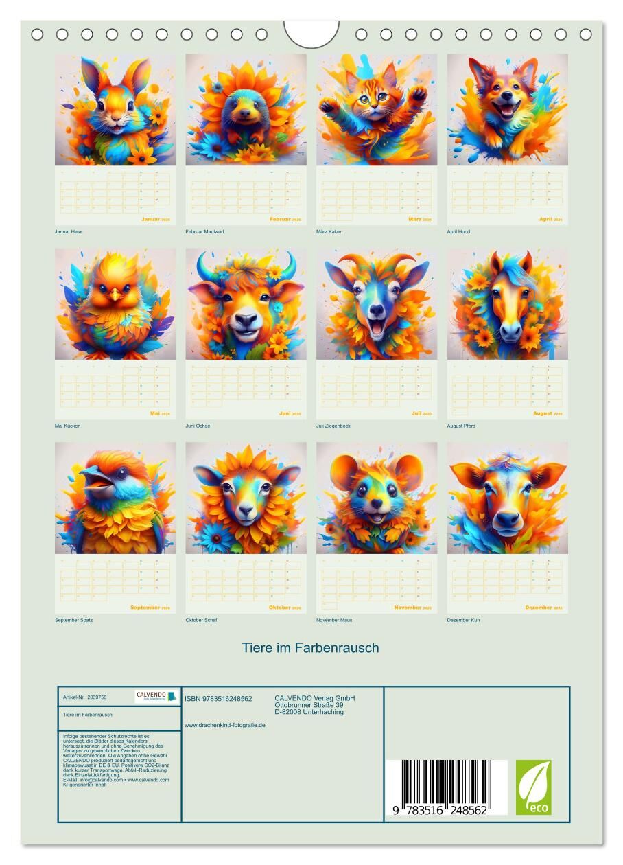 Der Ki Kalender "Tiere im Farbenrausch" von drachenkind-fotografie ist ein Planer für Kinder und Familien mit 13 einheimischen Tieren, die jedes Kind kennt. Niedliche und bekannte Tiere in harmonisch bunten Farben lassen jeden Monat die Kinderherzen hüpfen. Ei...