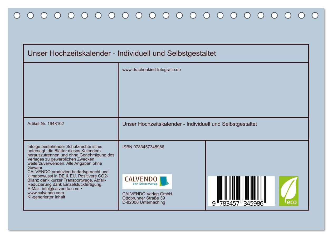 Dieser neue Hochzeitskalender mit eleganten, KI-generierten Hintergründen zum Selbstgestalten bietet Paaren oder ihren Freunden, die Möglichkeit, die schönsten Momente stilvoll zu präsentieren. Jeder Monat wird durch kunstvoll gestaltete Hintergründe hervorgeh...