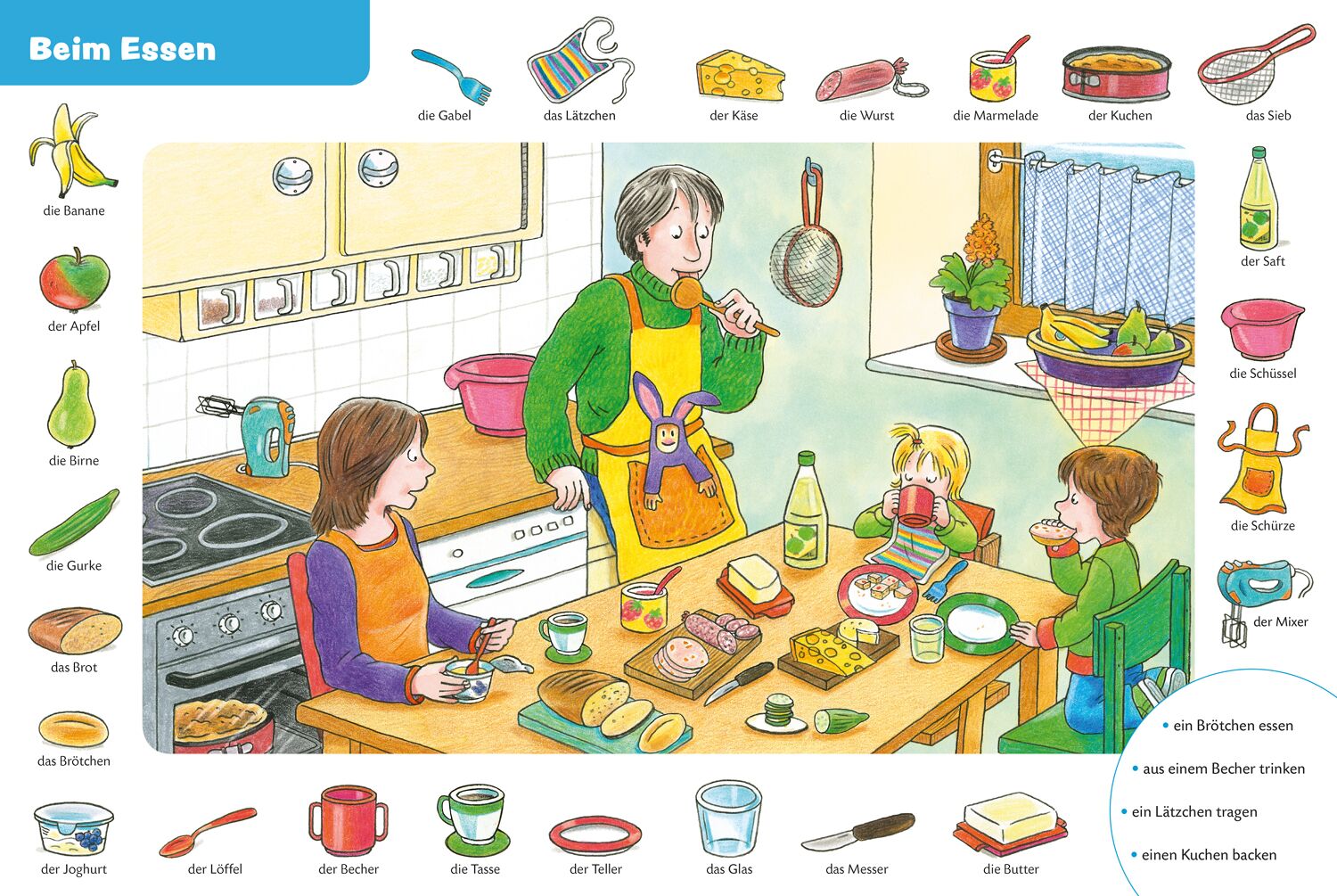 Der erste Duden für die Kleinsten Was spielen wir heute? Wer sitzt auf dem Töpfchen? Und wo steht das Dreirad? Große Bilder und Szenen greifen vertraute Alltagssituationen auf und zeigen die 250 wichtigsten Begriffe aus dem Grundwortschatz. Ein wunderbares gr...