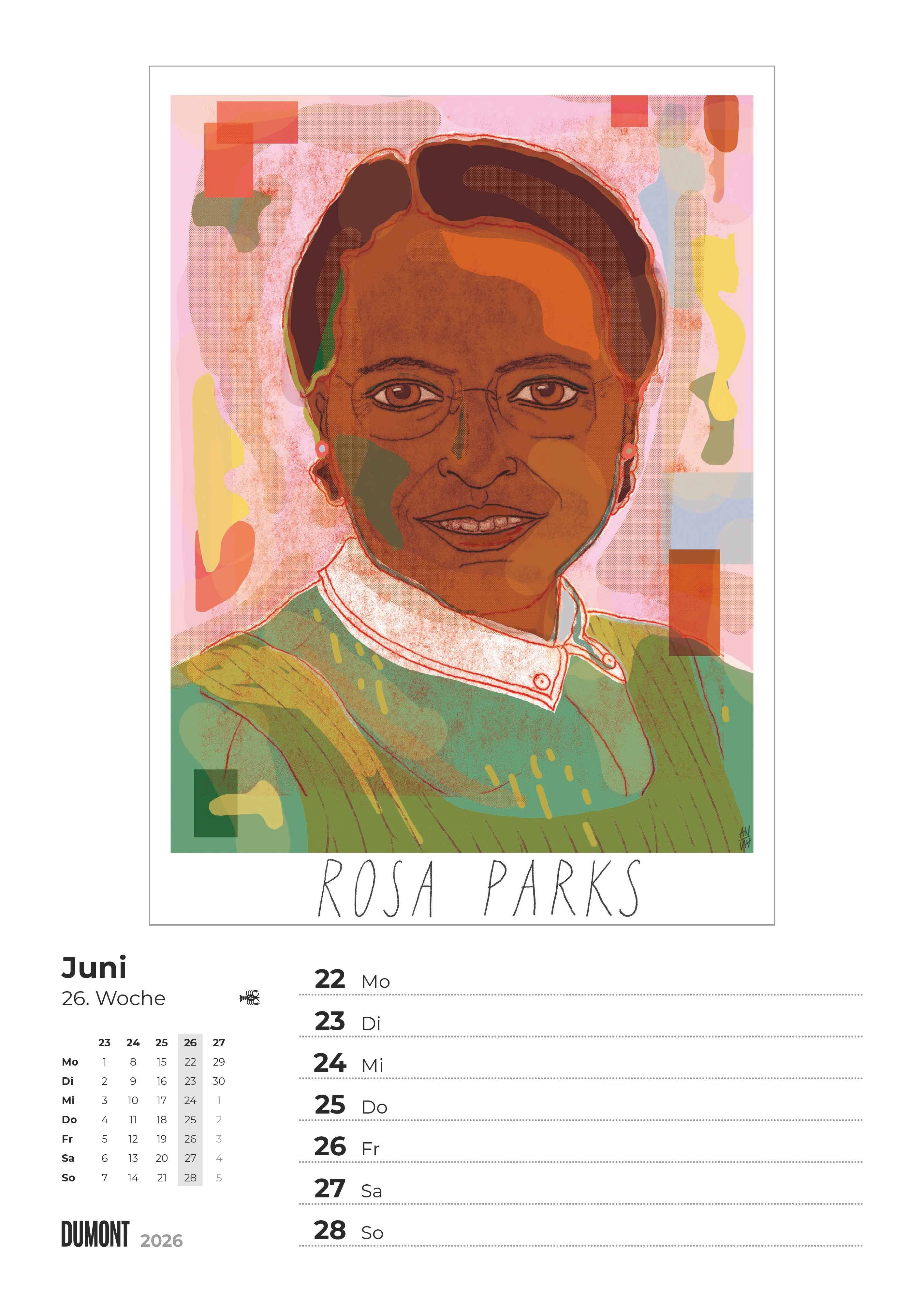 Lassen Sie sich Woche für Woche von inspirierenden Frauen aus aller Welt begleiten! Der DUMONT Wochenkalender 2026 zeigt 53 Porträts starker Frauen, ergänzt durch spannende Kurz-Biografien und Zitate. Highlights: 53 eindrucksvolle Frauenporträts von Künstleri...
