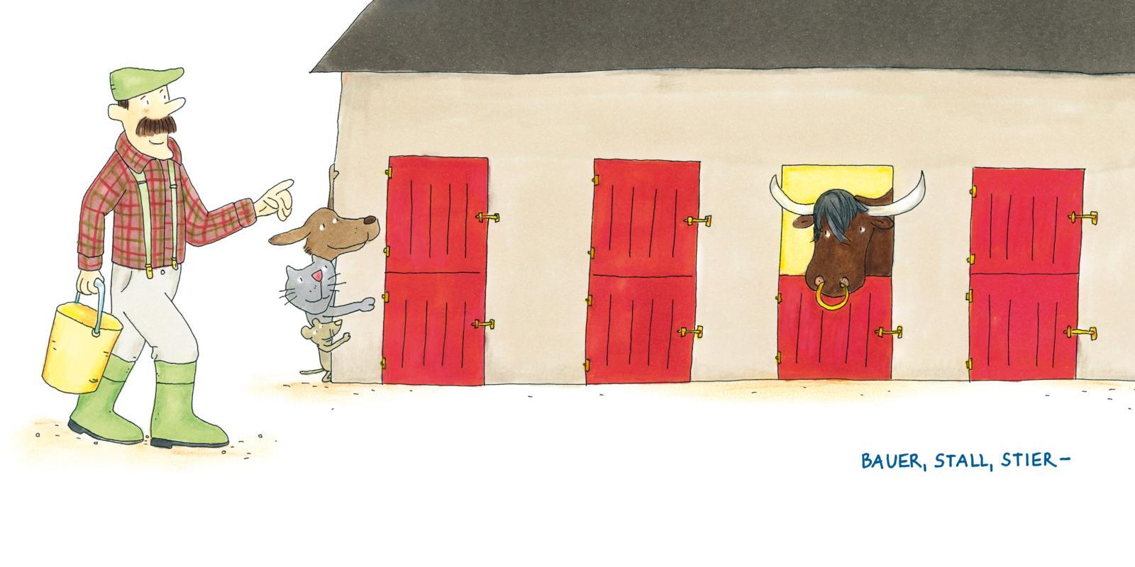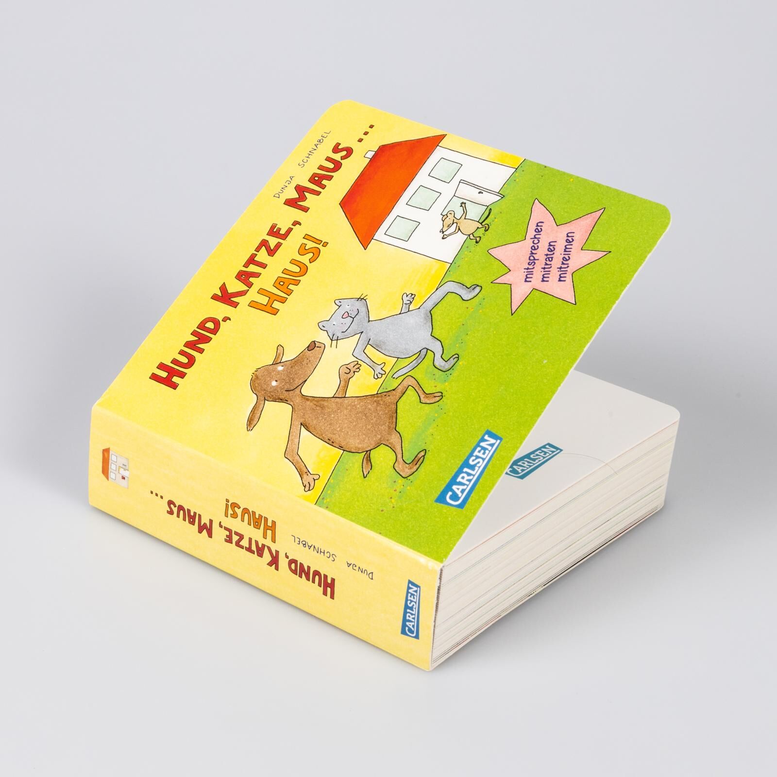 Reime-Buch und Bild-Wörter-Buch in einem Zusammen mit Hund, Katze und Maus gehen Kinder hier auf ein lustige, zum Mitmachen einladenden Reim-Reise . Sie springen fantasievoll von Szene zu Szene und jedes Umblättern wird zu einem spannenden Moment, denn hier s...