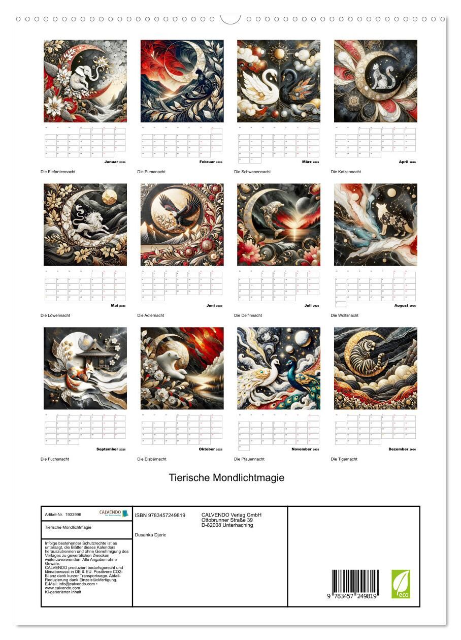 Erleben Sie die Magie der Nacht mit unserem faszinierenden KI-generierten Kalender. Dieser atemberaubende Kalender zeigt eine Sammlung Bilder von Tieren, wunderschönen Landschaften und Blumen, alles im sanften Glanz des Mondlichts. Jedes Bild fängt die geheimn...