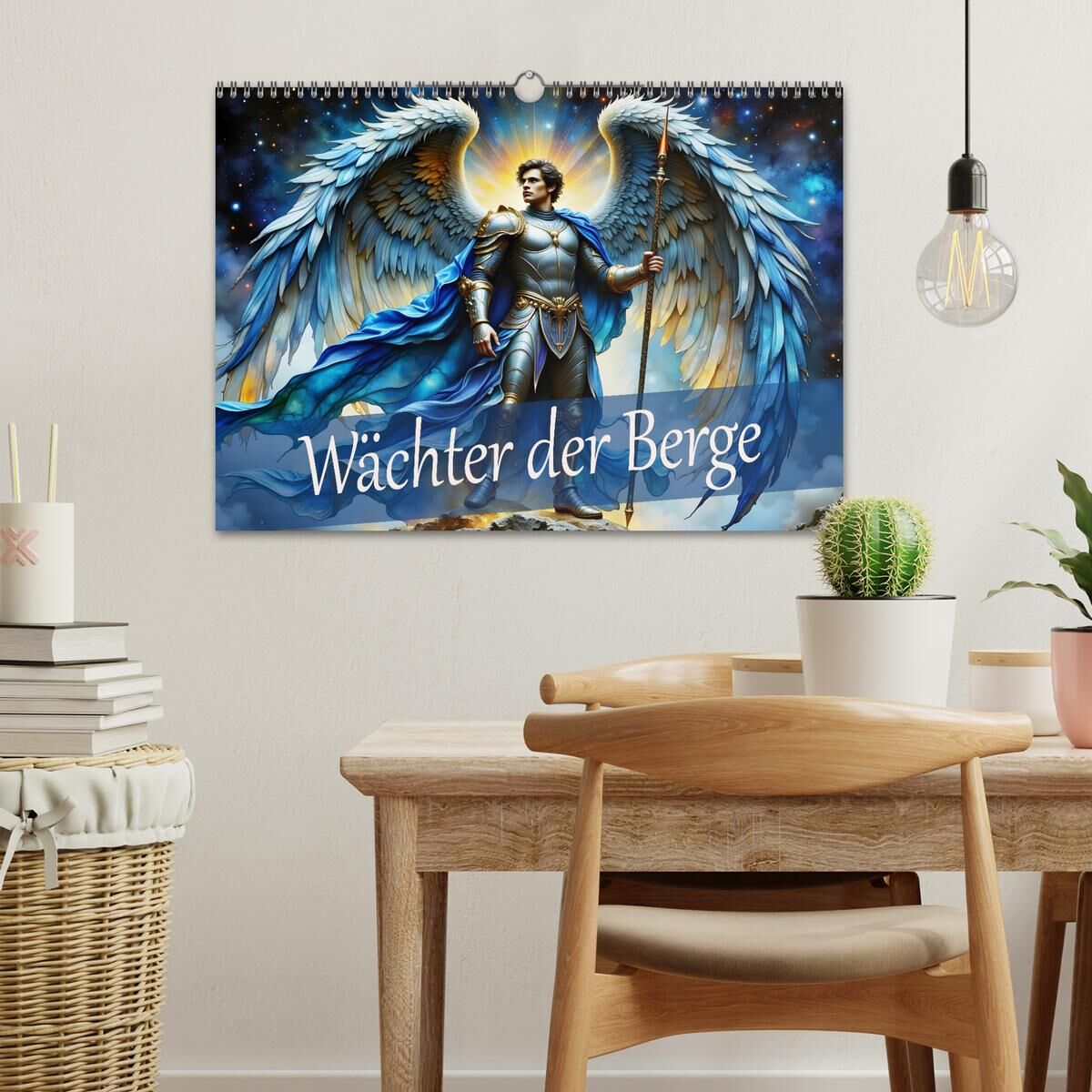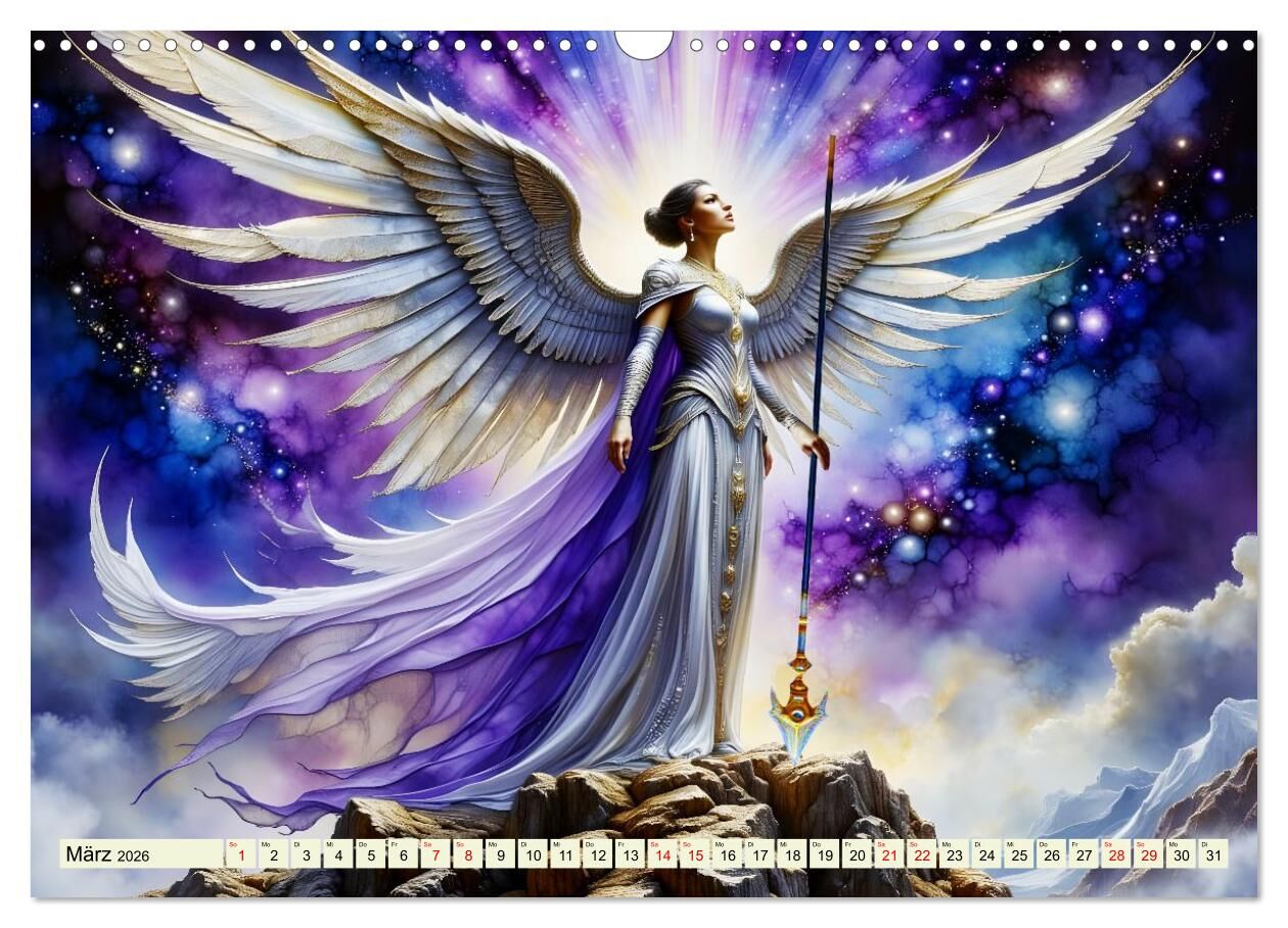 Dieser Kalender wurde von KI erschaffen und entführt Sie in ein farbenfrohes Reich himmlischer Gestalten. Anmutige Engelritter erstrahlen in leuchtender Schönheit, auf einem majestätischen Berg thronen, die schützenden Hüter einer Welt voller Licht und Poesie....