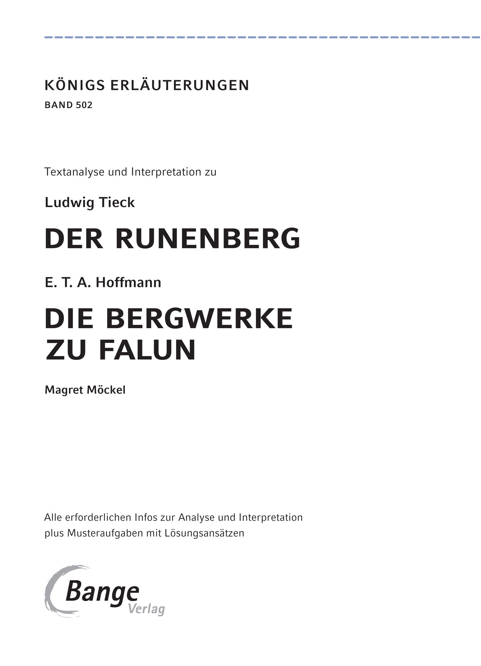 Spare Zeit und verzichte auf lästige Recherche! In diesem Doppel-Band zu Tieck, Ludwig und E.T.A. Hoffmann, Der Runenberg; Des Lebens Überfluss, Die Berwerge zu Falun findest du alles, was du zur Vorbereitung auf Referat, Klausur, Abitur oder Matura benötigst ...