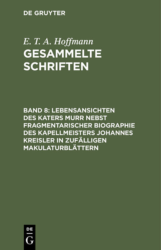 E. T. A. Hoffmann: Gesammelte Schriften / Lebensansichten des Katers Murr nebst fragmentarischer Biographie des Kapellmeisters Johannes Kreisler in zufälligen Makulaturblättern