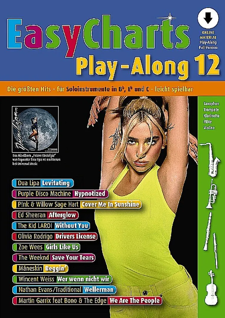 Easy Charts Play-Along 12 ist die neueste Ausgabe der erfolgreichen Reihe, mit der Nachwuchsmusiker aktuelle Chart-Hits nachspielen können. Dazu gehören u.a. Afterglow von Ed Sheeran, Girls Like Us der TikTok-Trendsetterin Zoe Wees oder Without You von The Kid...