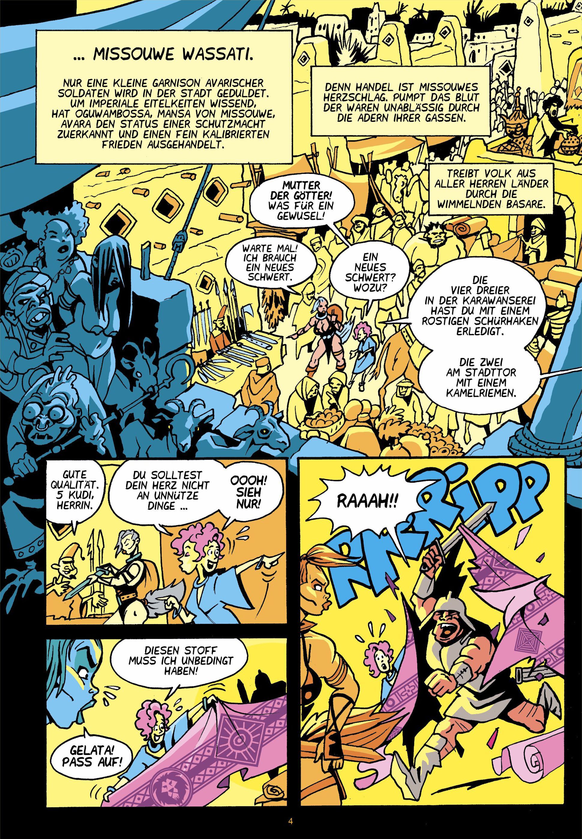 Die Wolfschwänzin macht auf ihrer Reise durch die hitzeflimmernden Weiten Halt in der Oasenstadt Missouwe Wassati, der von reichen Karawanen fett gemästeten Perle der Wüste. Hier herrscht der mächtige Mansa, aber auch Avara hat seine Soldaten in einer kleinen ...