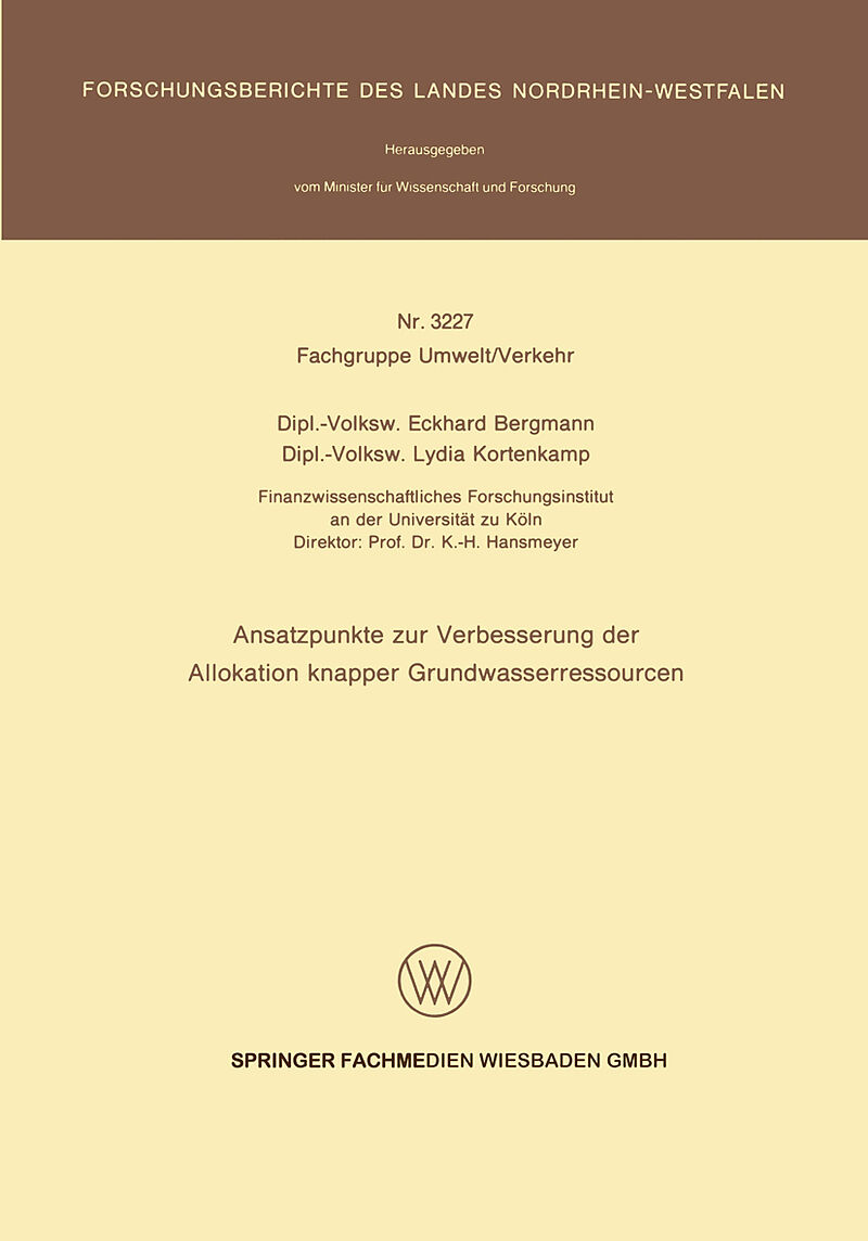 Inhalt A. Einführung.- B. Theoretische Überlegungen zur Grundwasserallokation.- C. Grundwasser eine Knappe Ressource.- D. Steuerung der Ressourcennutzung durch Marktliche und Planerische Verfahren.- E. Wasserrechtliche Vergabepraxis in der Bundesrepublik.- F. ...