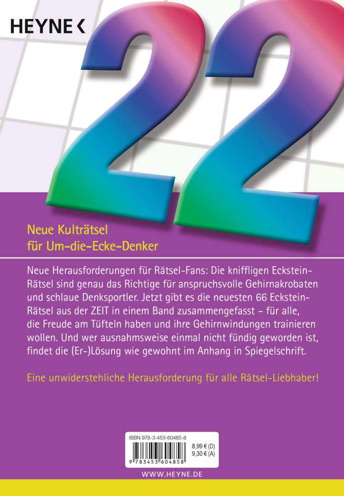 Kommt ZEIT, kommt Eckstein An alle Um-die-1-Denker: nehmen Sie die Herausforderung an, testen Sie Ihr 2! Zum 3 aller Hirnakrobaten und Rätselprofis haben wir wieder die 4esten 66 Eckstein-Rätsel aus der ZEIT in einem Band zusammengestellt. Und 5 ausnahmsweise ...