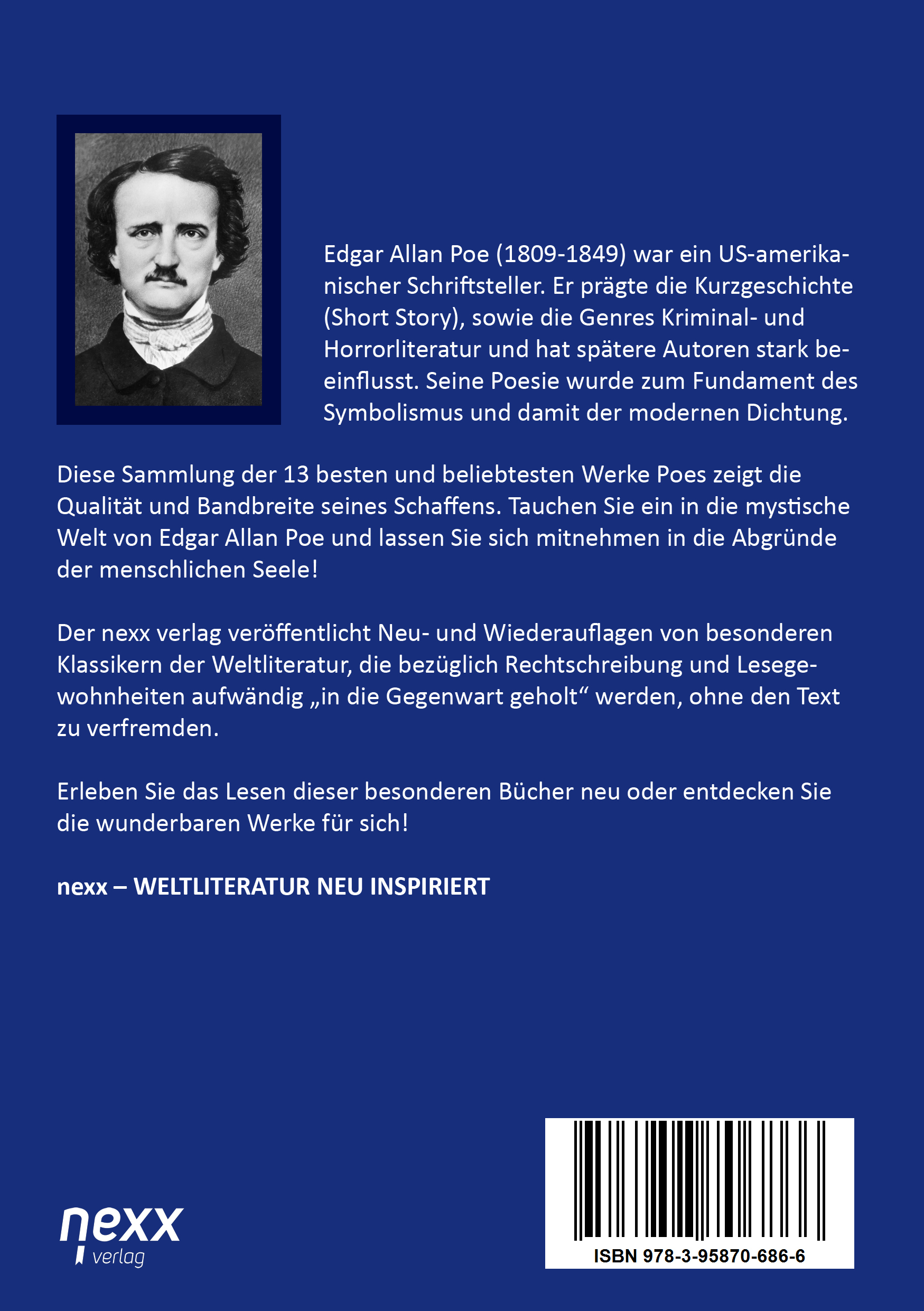 »In der Stunde des Lesens hat der Autor die Seele des Lesers in seiner Gewalt« Edgar Allen Poe Das Beste von Poe: Diese spannendsten und zugleich schönsten und beliebtesten Werke Poes zeigen die ganze Qualität und die gesamte Bandbreite seines Schaffens. Tauc...