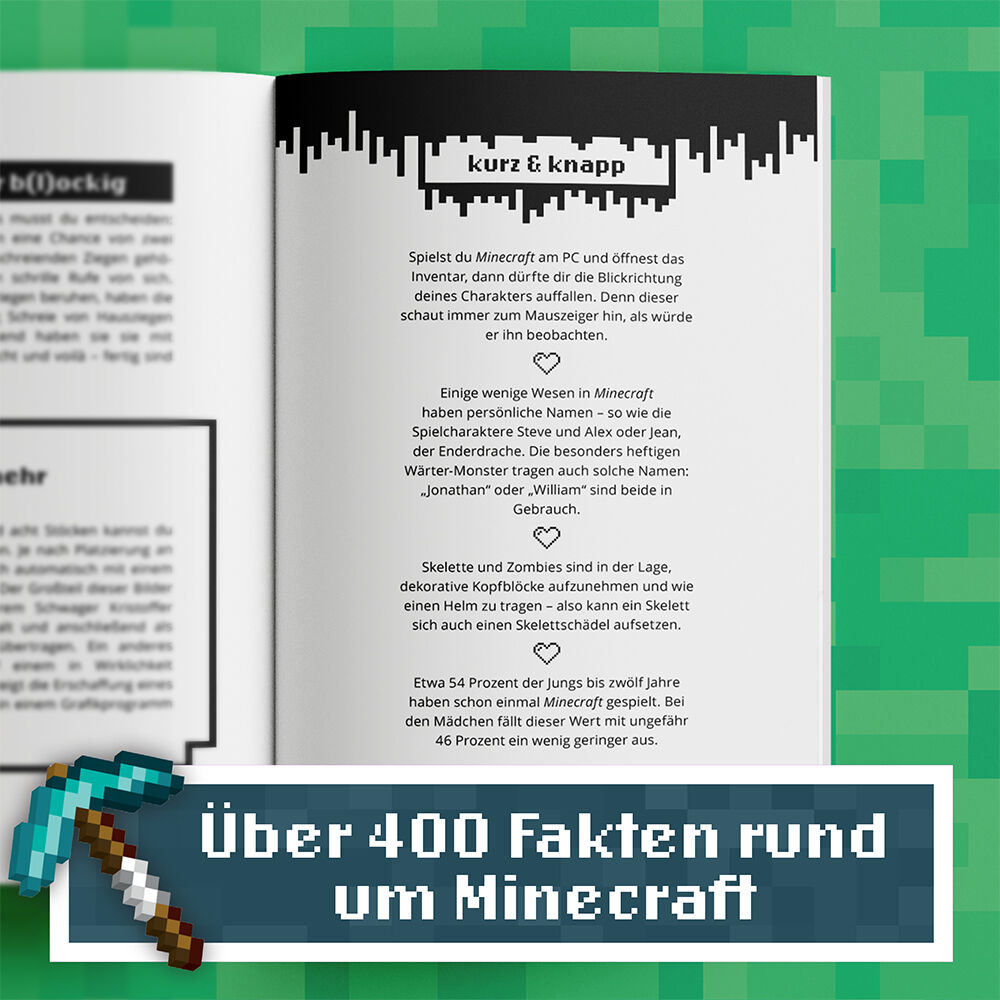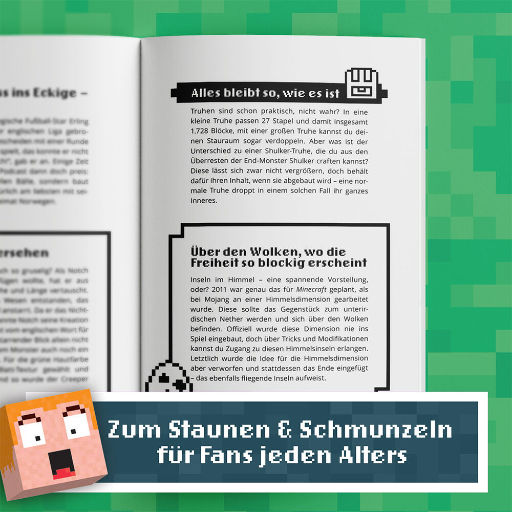 Minecraft-Fans staunen (Bau-)Klötze In diesem Buch erwartet dich die ultimative Wissenssammlung für Minecraft-Fans: Staune über unglaubliche Fun-Facts, lerne die verrücktesten Rekorde kennen und entdecke spannende Geheimnisse, die dich umhauen werden. Schon g...