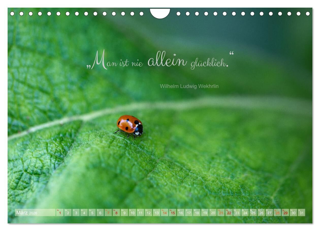 Marienkäfer & Zitate - Sieben Punkte zum Glück (Wandkalender 2026 DIN A4 quer), CALVENDO Monatskalender