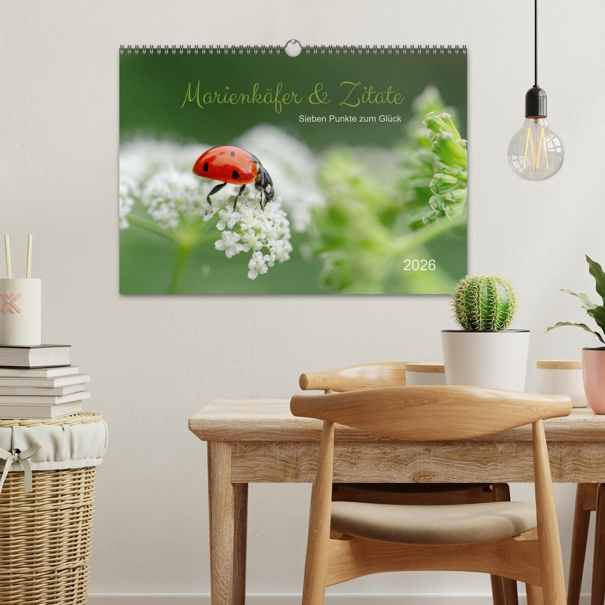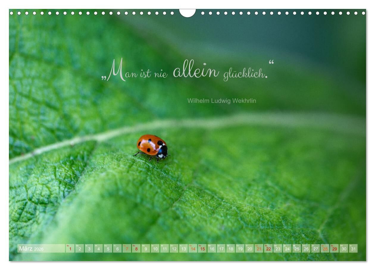 Marienkäfer & Zitate - Sieben Punkte zum Glück (Wandkalender 2026 DIN A3 quer), CALVENDO Monatskalender