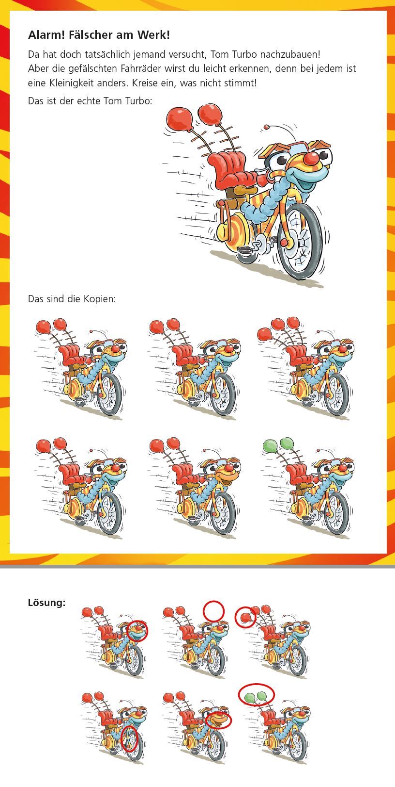Du bist der Rätselboss! Mit Tom Turbo, dem tollsten Fahrrad der Welt, und seinen besten Freunden, den Geschwistern Karo und Klaro, macht das Rätsellösen großen Spaß! Hier sind Aufmerksamkeit, Logik und Konzentration gefragt! In diesem Block tüfteln die Kinder...