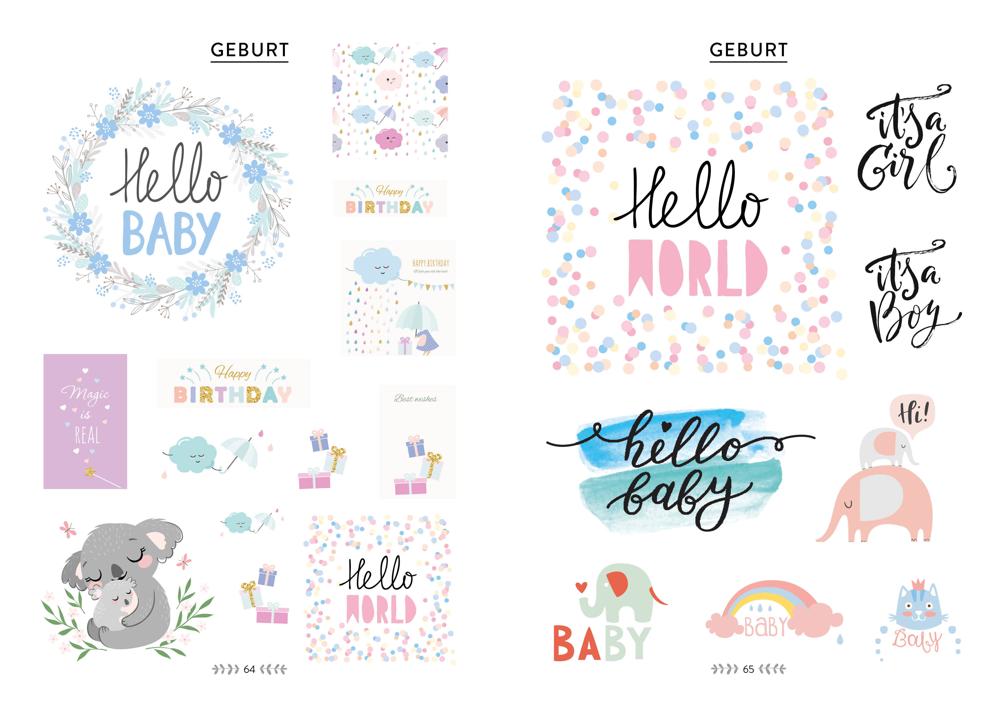 Bullet Journal Stickerbuch Hello Baby: 650 bezaubernde Sprüche und Schmuckelemente zur Geburt