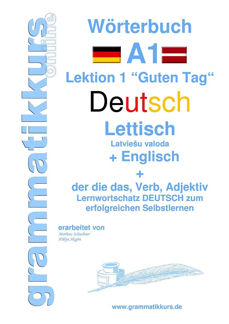 Der A1 Lektion 1 Guten Tag Lernwortschatz enthält zusätzlich zur Übersetzung ins LETTISCH - ENGLISCH folgenden Grammatiken. Substantive/Nomen Artikeln (der-die-das) Pluralformen, -endungen und Regeln zur Pluralbildung Fällen (Nominativ, Genitiv, Dativ, Akkusat...
