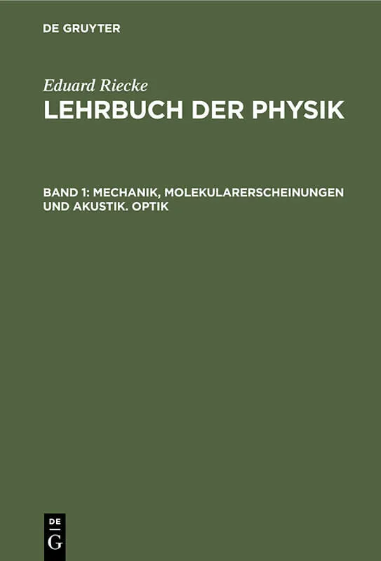 Keine ausführliche Beschreibung für "Mechanik, Molekularerscheinungen und Akustik. Optik" verfügbar. Frontmatter -- Vorwort zur ersten Auflage -- Vorwort zur fünften Auflage -- Inhalt -- Einleitung -- Erster Teil. Mechanik. Molekularerscheinungen. Ak...