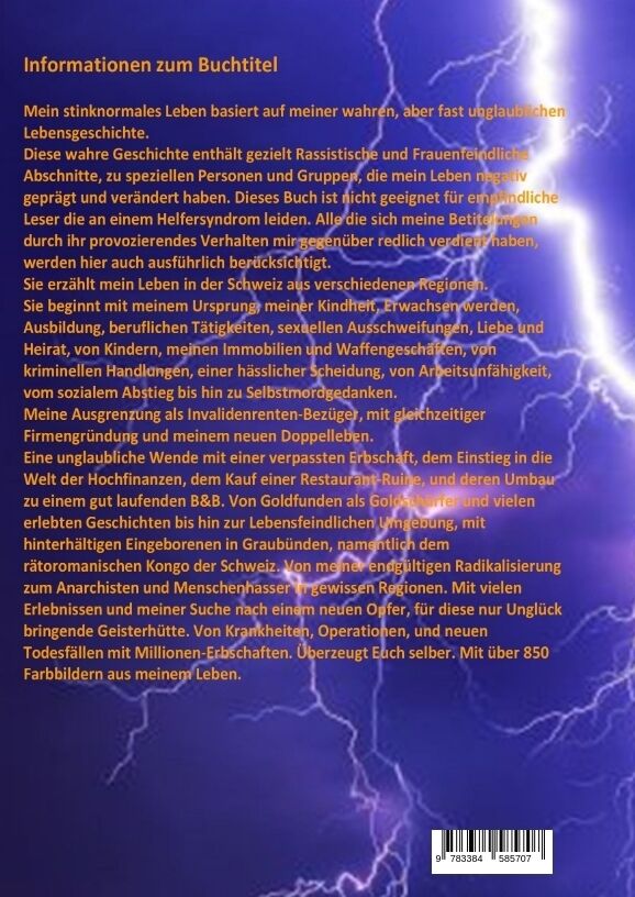 Mein stinknormales Leben in der geordneten Schweiz, mit Risiken und allen Nebenwirkungen die unser Rechtssystem zu bieten hat. Von meinen ärmlichen Vorfahren und Erzeugern, meiner Kindheit, meinen Jugendsünden mit beginnender Sexualität und Kriminalität, von H...