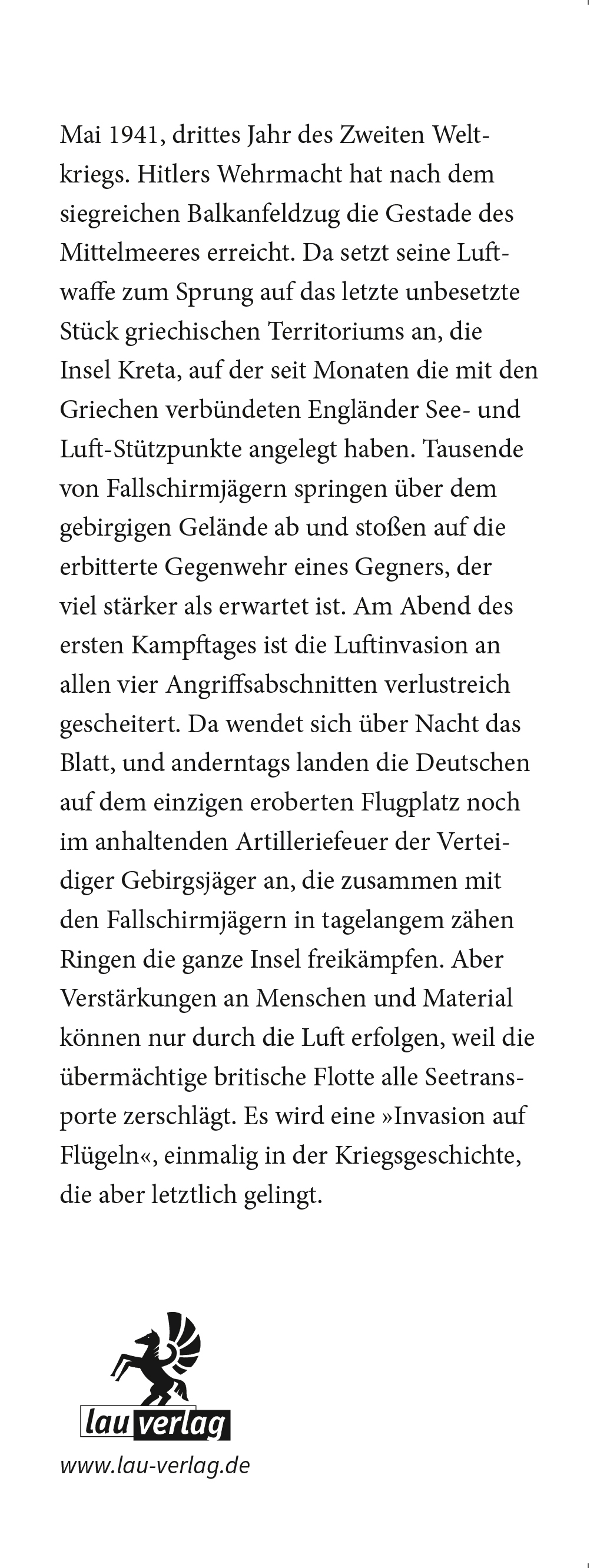 Die Eroberung Kretas durch eine Invasion, die ausschließlich durch die Luft erfolgte, war eine der erstaunlichsten und kühnsten Taten des Krieges. Sie war auch das bemerkenswerteste Luftlandeunternehmen des Krieges, urteilte der britische Militärhistoriker Lid...