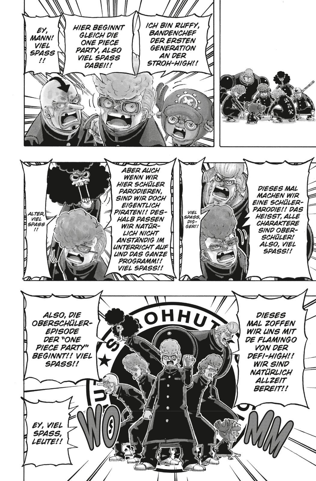 Piratenstarker Partyspaß! Willkommen bei der One Piece Party! In fünf kurzen und lustigen Kapiteln mit Gastauftritten beliebter Charaktere erleben die Strohhut-Piraten fantastische Abenteuer. Ruffy hat sein Gedächtnis verloren! Natürlich muss ausgerechnet jet...