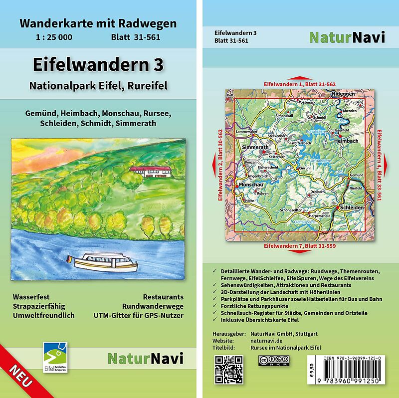 Sehr genaue und aktuelle topografische Kartographie im Ideal-Maßstab 1 : 25 000 Detaillierte Wander- und Radwege: Rundwege, Themenrouten, Fernwege, EifelSchleifen, EifelSpuren, Wege des Eifelvereins 3D-Darstellung der Landschaft mit Höhenlinien Sehenswürdigke...
