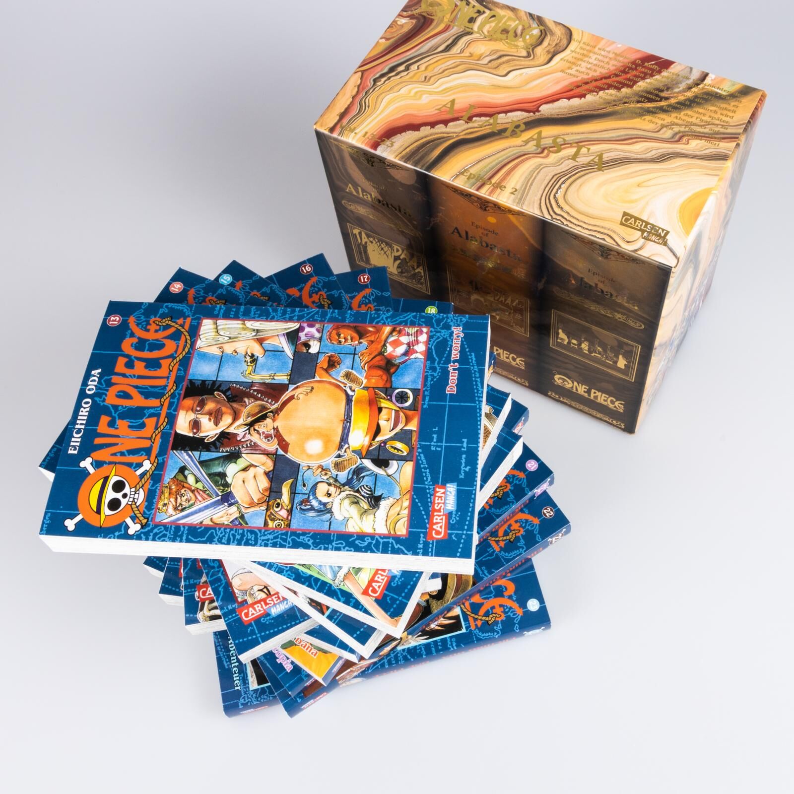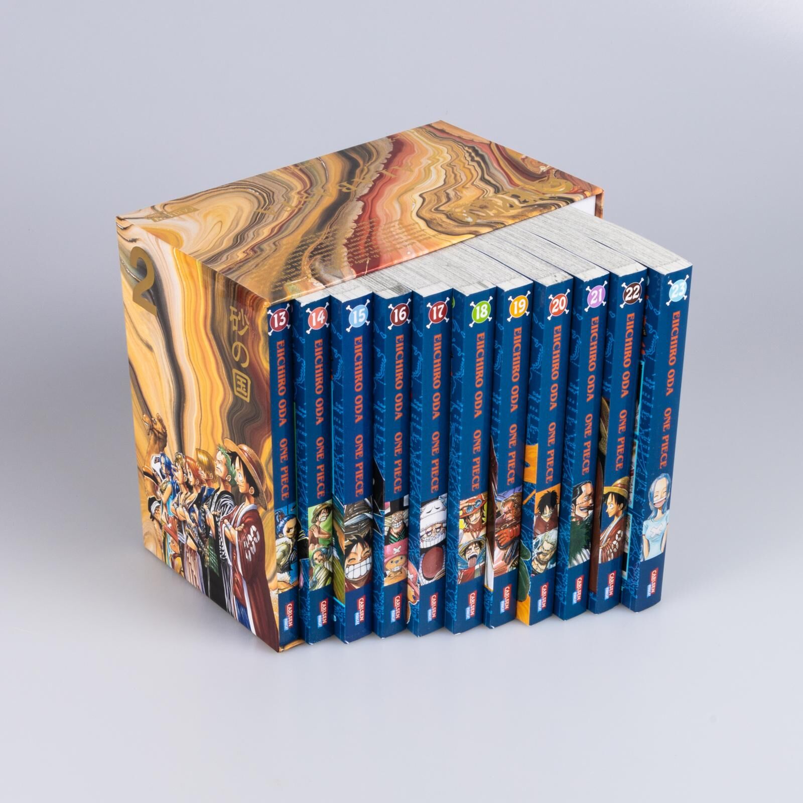 Der zweite von vielen schicken Sammelschubern beinhaltet die Bände 13 bis 23 des beliebtesten Manga der Welt: ONE PIECE ! Das ideale Starter-Set (und Geschenk) für Fans der Piratenserie und all jene, die es werden wollen! Monkey D. Ruffy ist ein abenteuerlust...