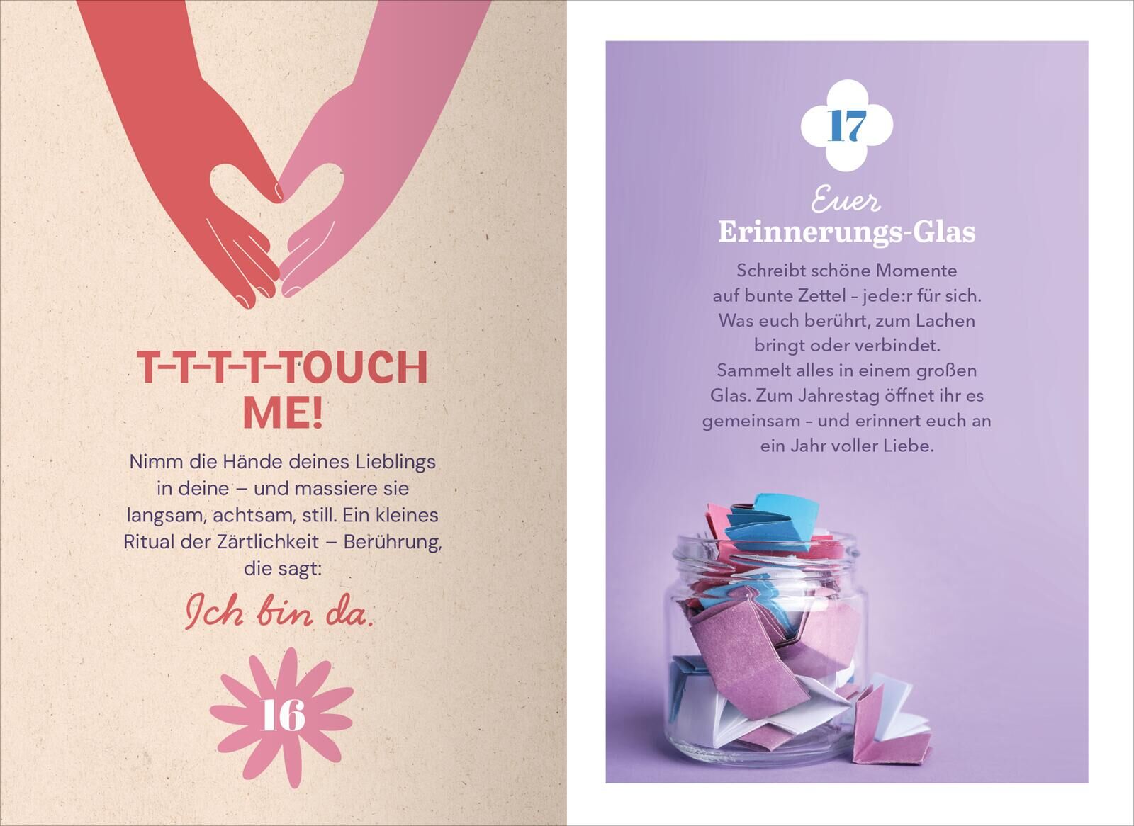 Gemeinsame Zeit ist das schönste Geschenk Dieses Buch enthält 99 liebevolle Ideen, Rituale und kleine Abenteuer, die das Miteinander noch besonderer machen. Ob frisch verliebt oder schon lange ein Team dieses Buch schenkt euch Impulse für mehr Nähe, Wertschät...