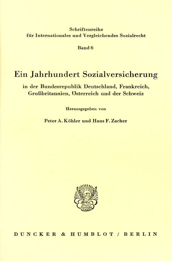 Ein Jahrhundert Sozialversicherung in der Bundesrepublik Deutschland, Frankreich, Großbritannien, Österreich und der Schweiz.