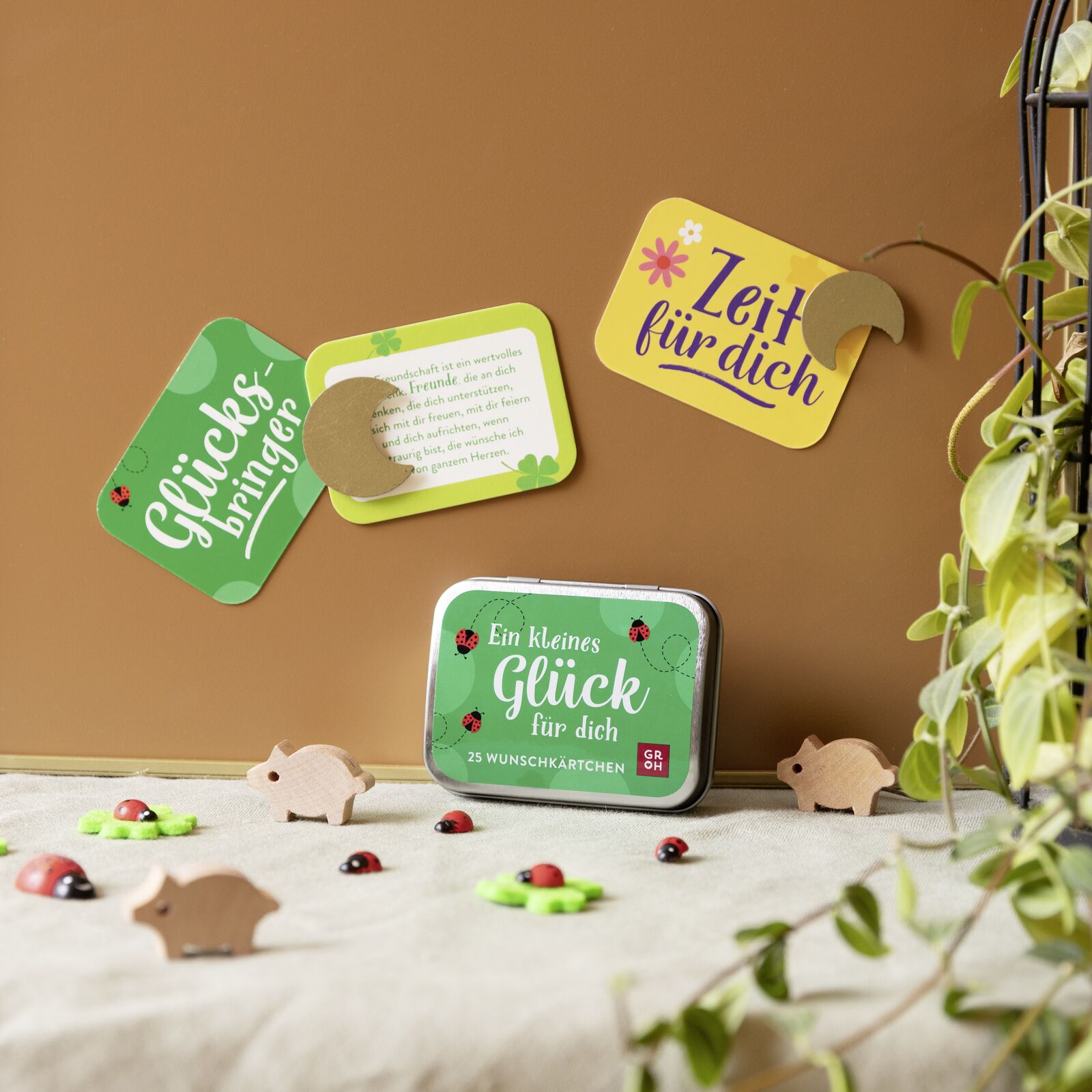Kleines Format großes Glück! Eine Prise Glück kann jeder mal gebrauchen: Diese charmante Metalldose enthält 25 liebevoll gestaltete Kärtchen mit kleinen Glücksbotschaften und guten Wünschen. Die Dose passt in jede Hosentasche und ist ein nettes Geschenk für l...