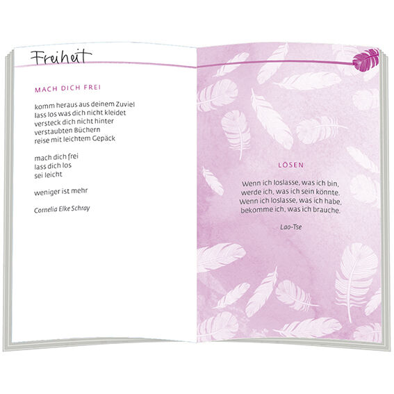 Im Alltag einfach mal loslassen, den Träumen vertrauen und beflügelt von einem Lächeln die Zeit genießen, dazu laden die guten Wünsche und Gedanken in diesem Heft ein.