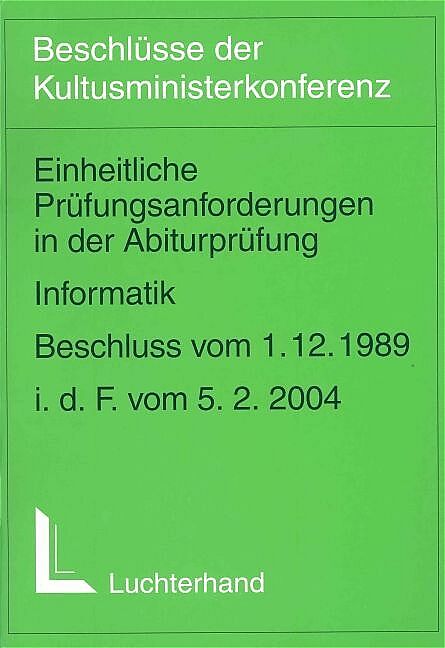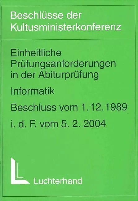 Einheitliche Prüfungsanforderungen in der Abiturprüfung (EPA) - Informatik - Beschluss vom 1.12.1989 i.d.F. vom 5.2.2004 Die Einheitlichen Prüfungsanforderungen legen für die Abiturprüfung konkrete Lern- und Prüfungsbereiche fest. Diese zu kennen ist für Lehr...