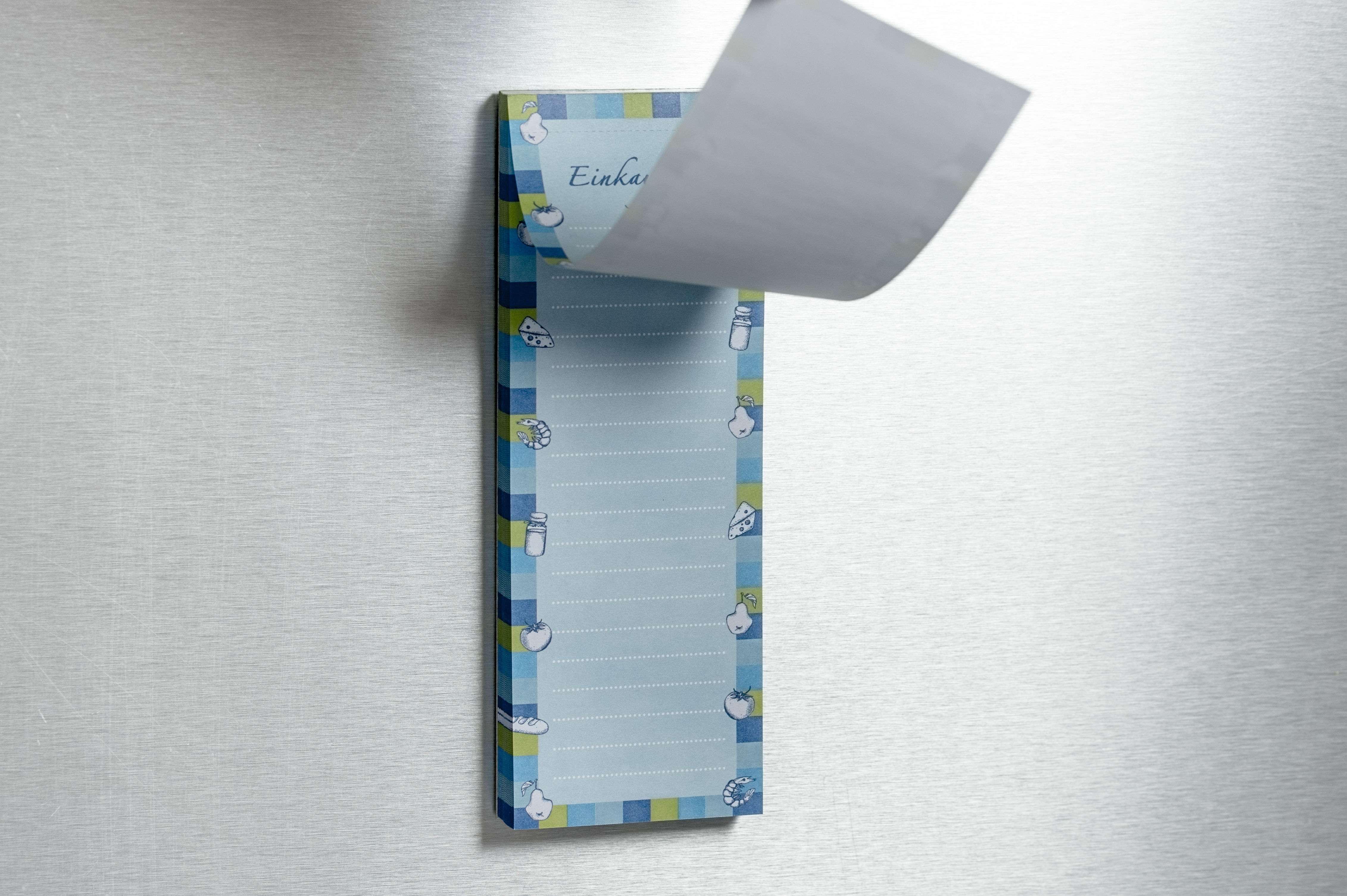 Dieser praktische Block dient als Einkaufszettel für den täglichen Gebrauch. Mit Magnetstreifen ausgestattet haftet der Block am Kühlschrank, so dass man fehlende Produkte direkt eintragen kann und somit nie wieder etwas vergisst oder im Supermarkt zu viel ein...