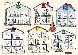 Lolas großes Poster für den Klassenraum enthält auf der einen Seite die strukturierte Schreibtabelle mit den wichtigsten Buchstaben und Anlautbildern, auf der anderen Seite alle Buchstaben und Laute, sortiert in der Reihenfolge der sechs Buchstabenhefte (Buchs...